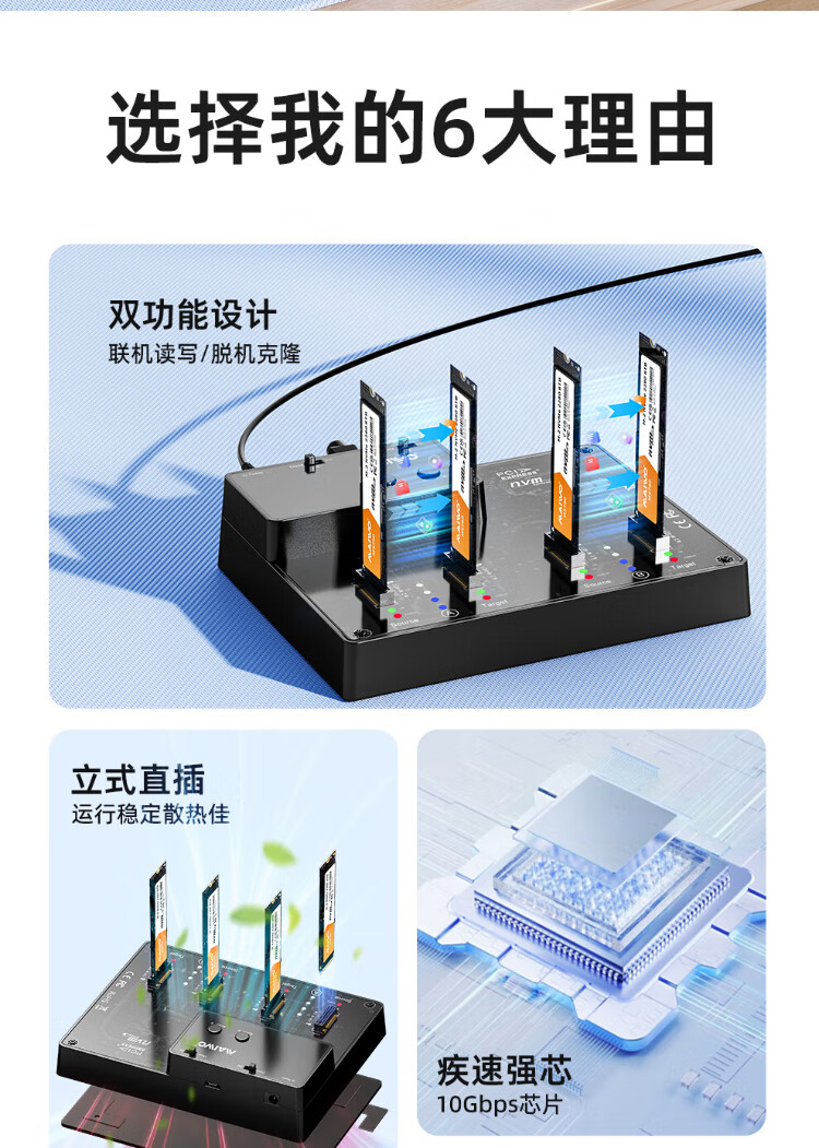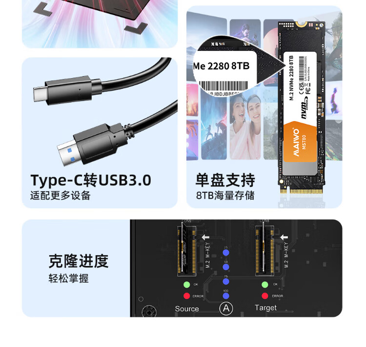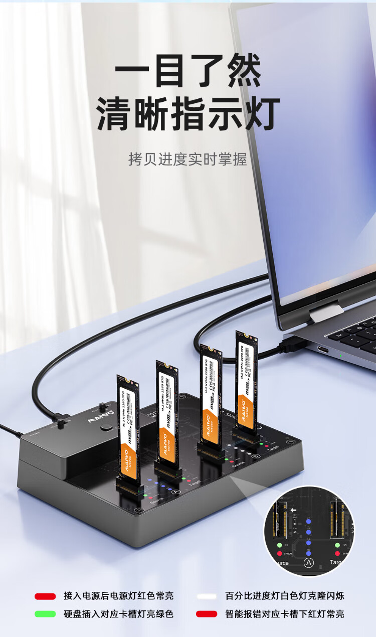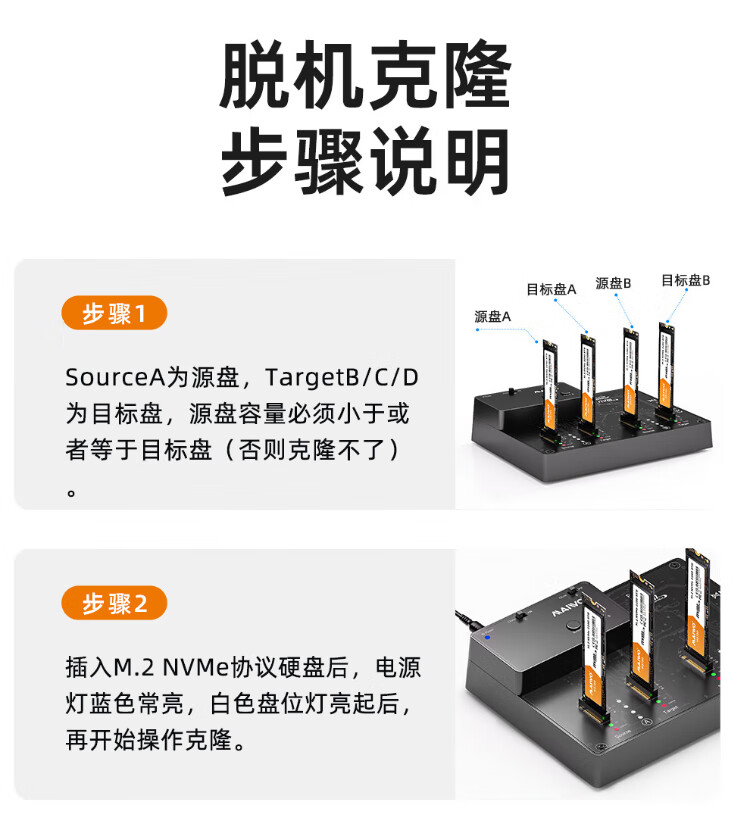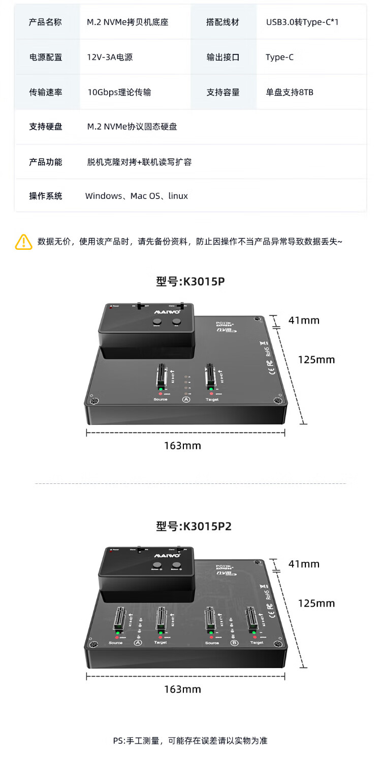 麦沃(MAIWO) M.2 NVMe/AHCI固态硬盘盒拷贝机 Type-C外置笔记本台式固态硬盘读取盒 M.2 NVMe/SATA硬盘对拷机 【工业级】双排NVMe硬盘拷贝机-K3015P2