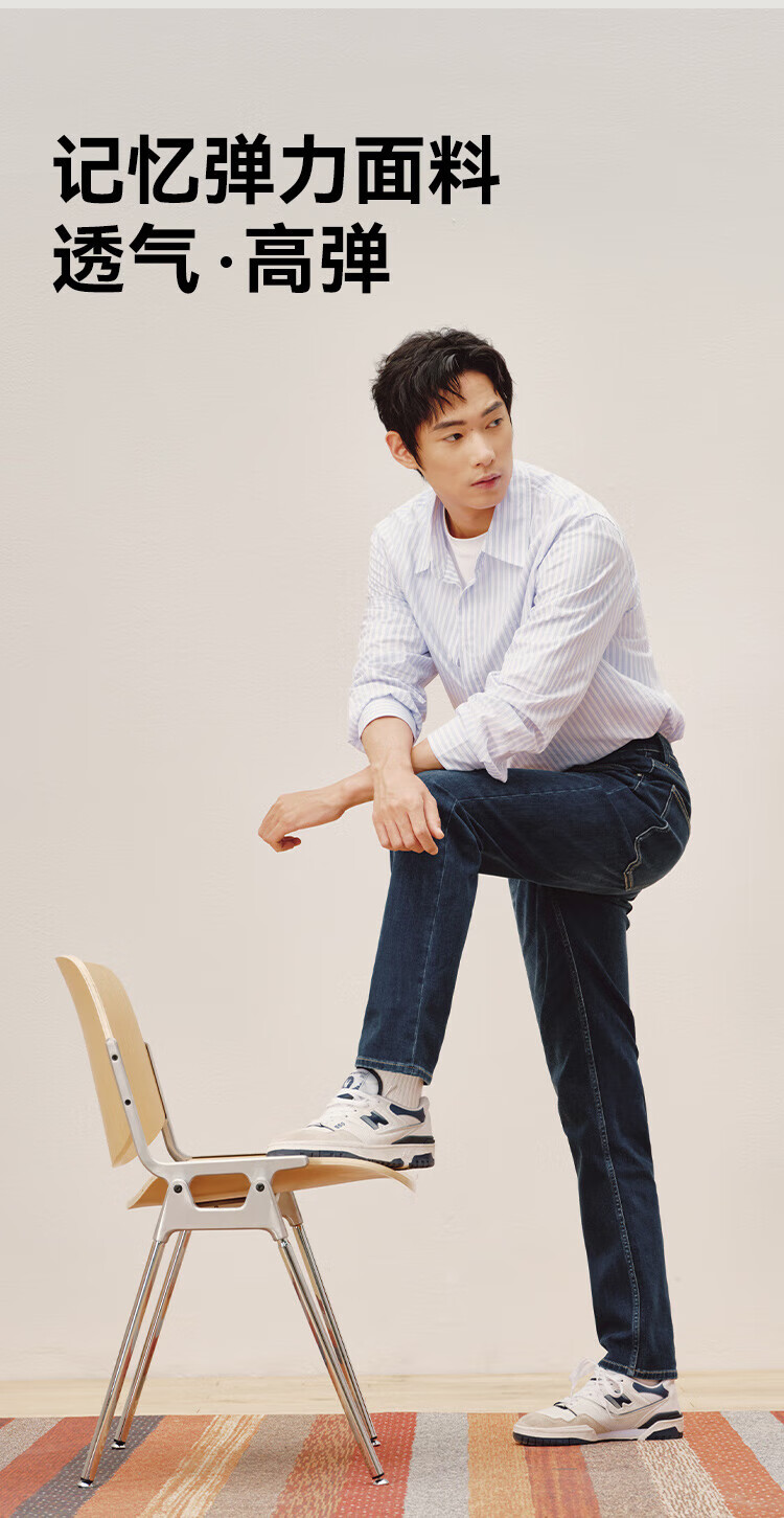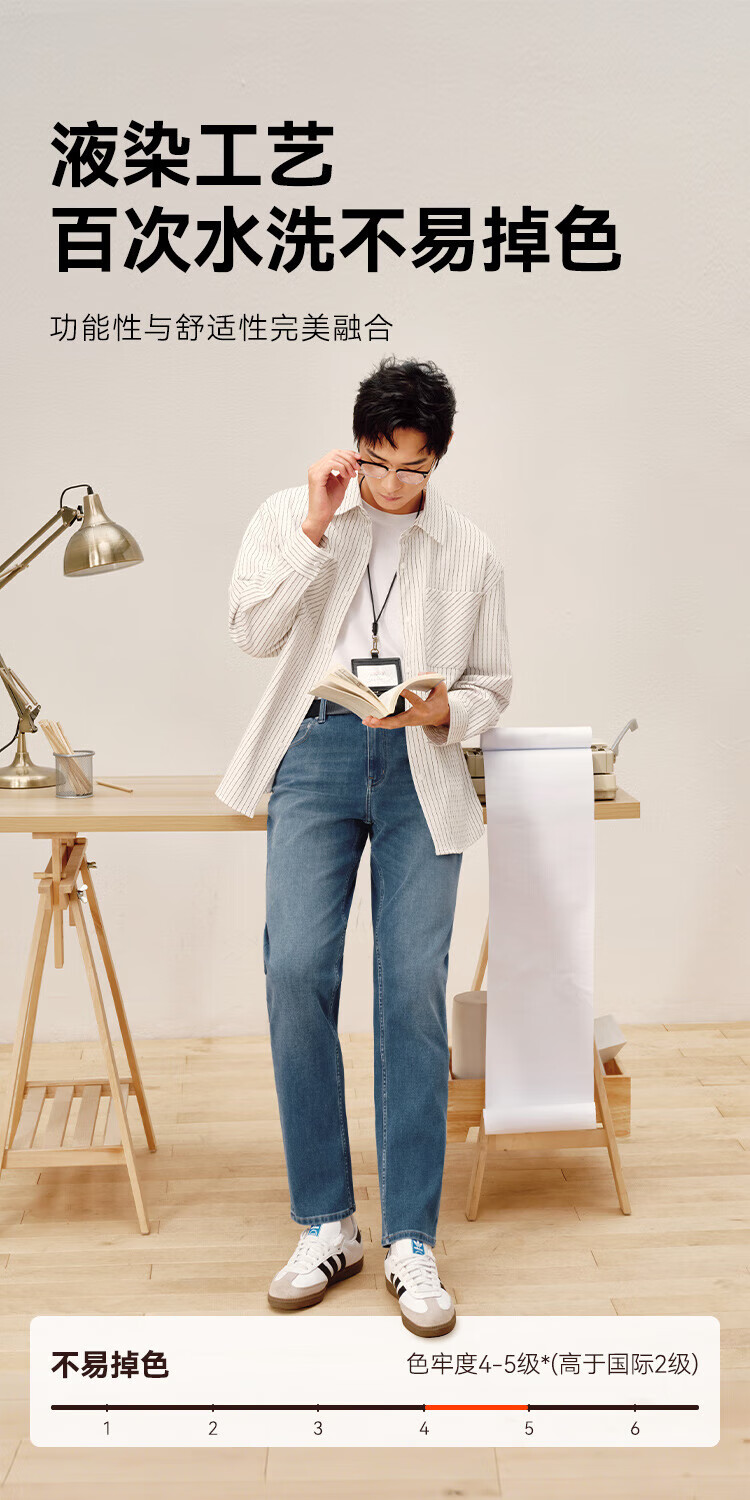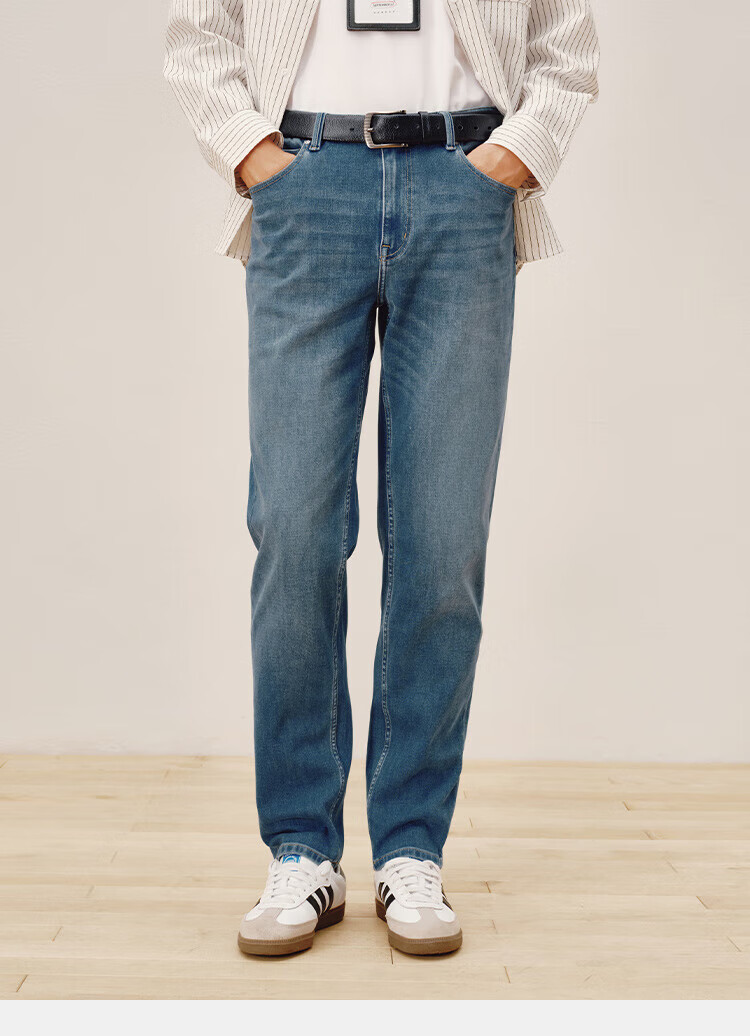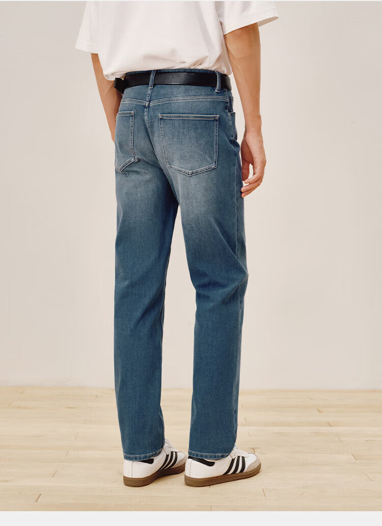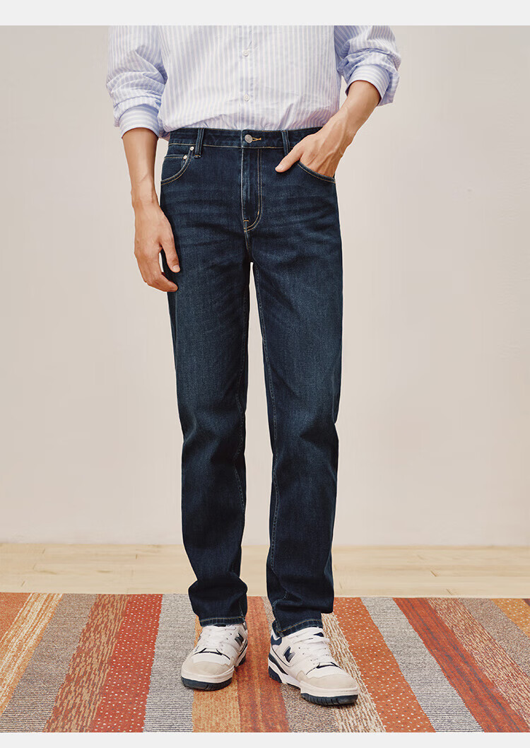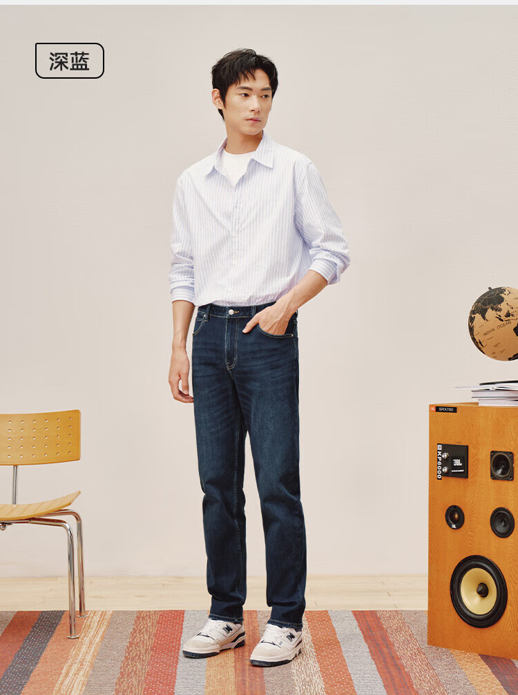 Jingjing pantalones vaqueros hechos en Tokio, pantalones rectos para hombres 25, nuevos pantalones casuales elásticos de otoño para hombres, azul oscuro 33