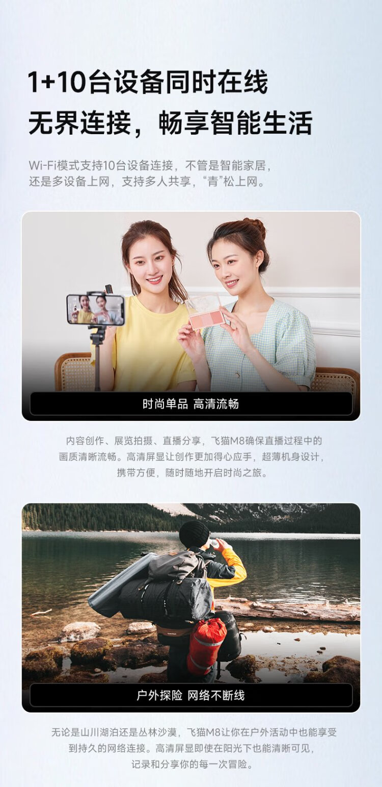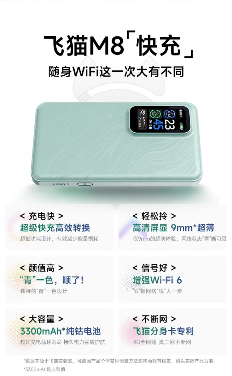 Feimao M8 4G portable wifi6 wireless mobile wifi card-free full network high-speed Internet car accompanying wireless network (monthly enjoyment of 1500G triple network single month)