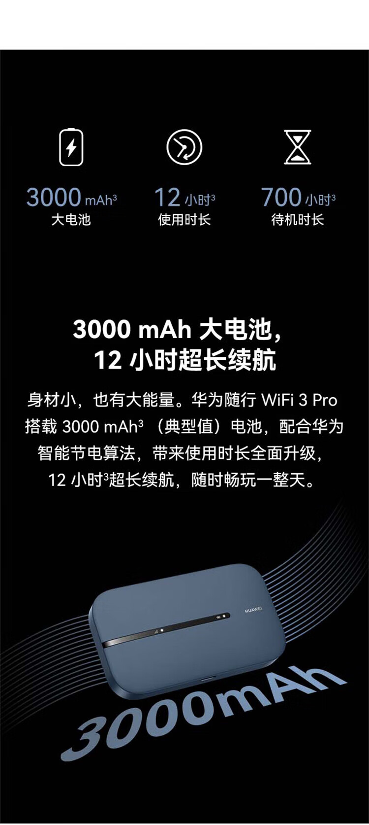 华为随行WiFi 3 Pro 4G+全网通 随身wifi 300M高速上网/3000mAh大电池 E5783-836