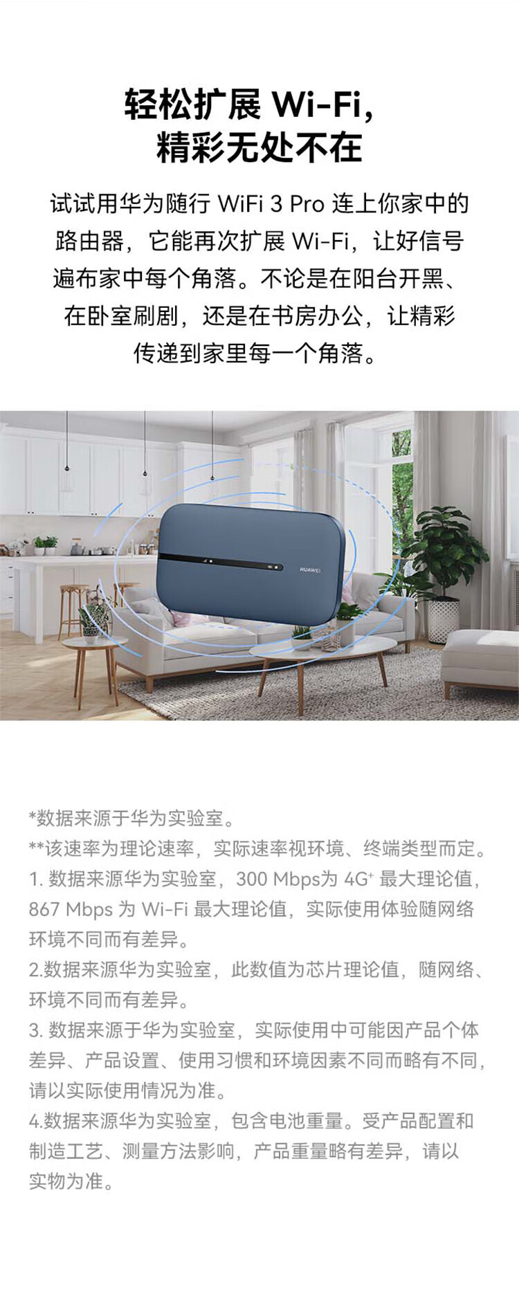 华为随行WiFi 3 Pro 4G+全网通 随身wifi  300M高速上网/3000mAh大电池  E5783-836