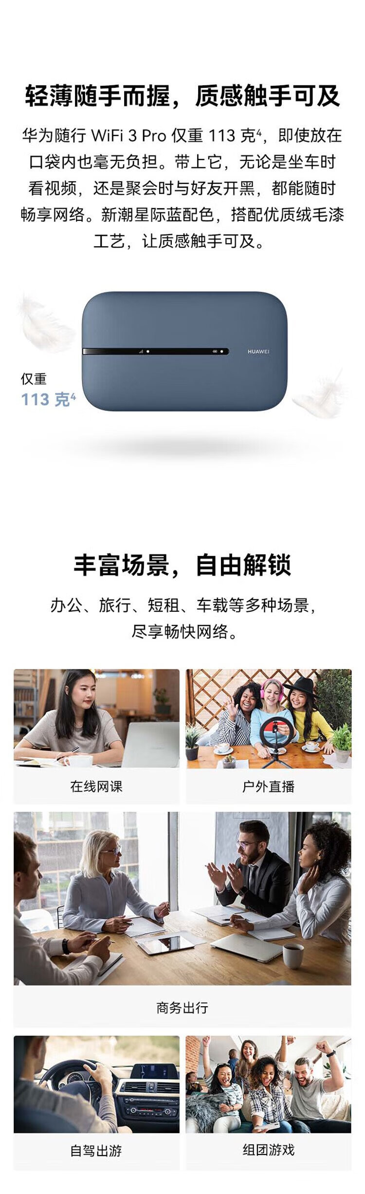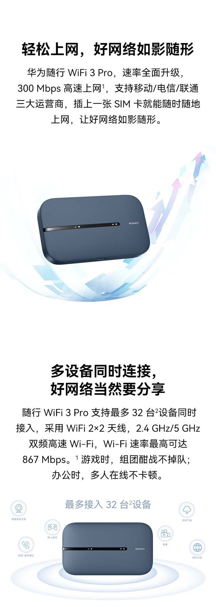 Huawei Mobile WiFi 3 Pro Tianjitong Edition Paquete anual China Mobile WiFi portátil/Acceso a Internet de alta velocidad de 300 M/Batería grande de 3000 mAh E5783-836