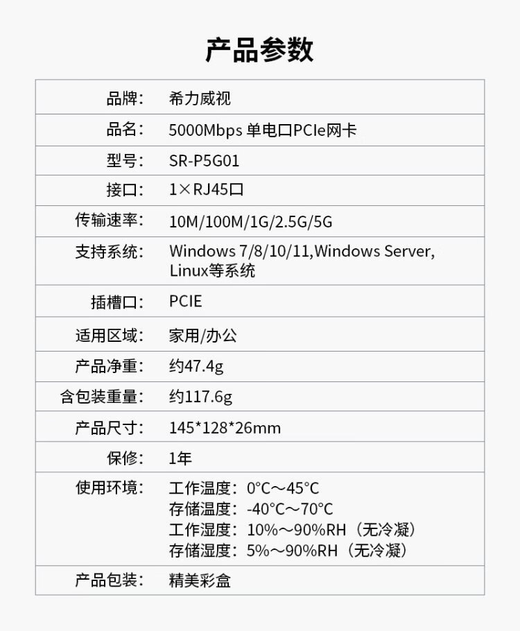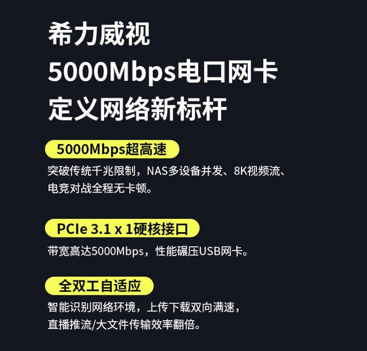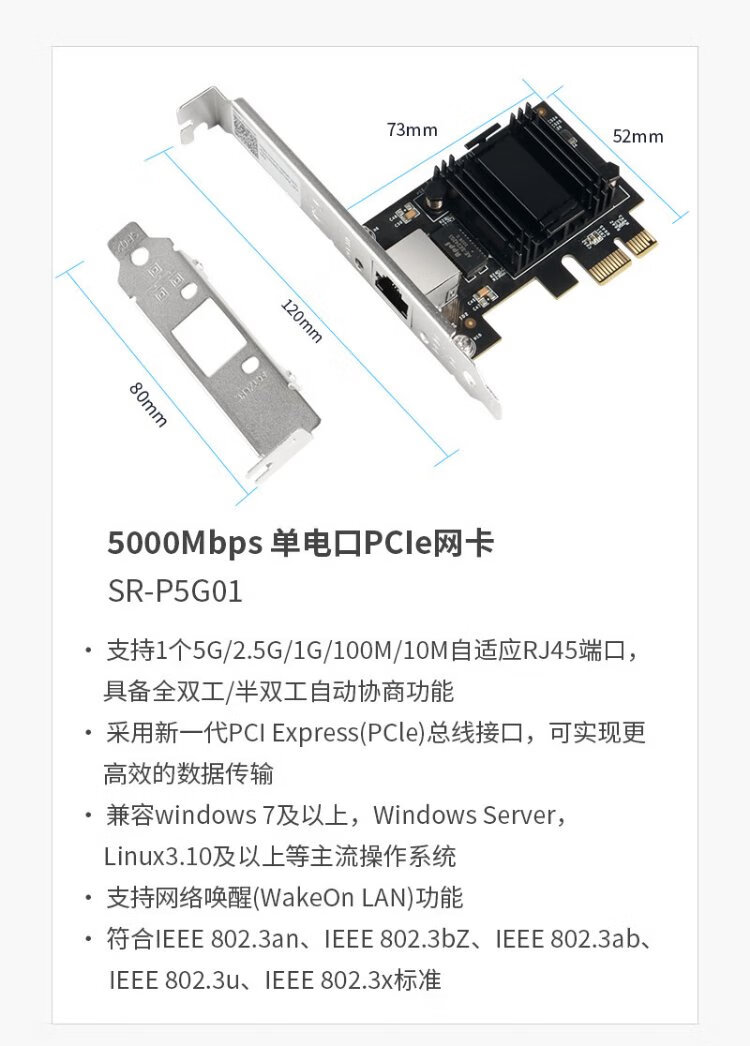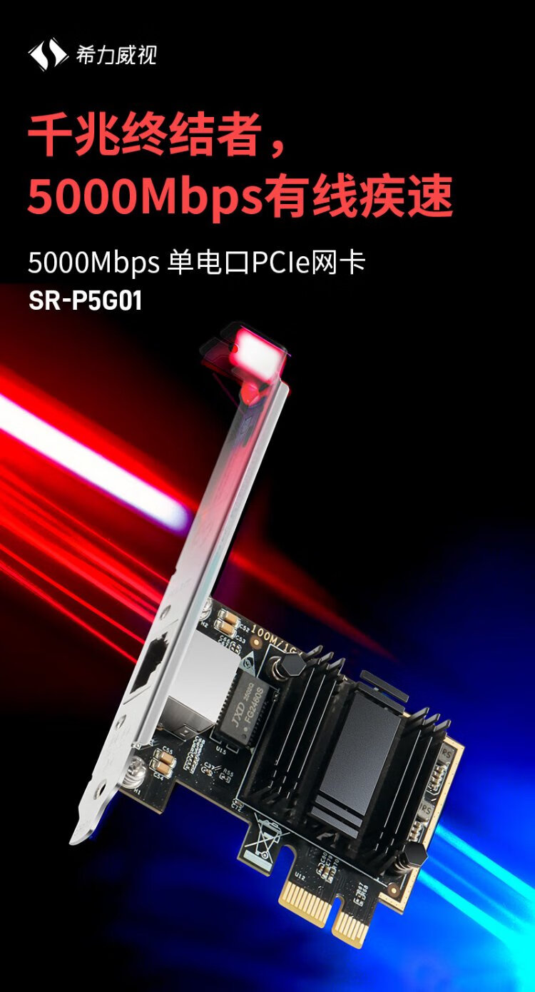 Xiliweishi PCI-E to 5G wired network card desktop computer NAS server RJ45 network port high-speed expansion card compatible with Gigabit 2.5G black SR-P5G01