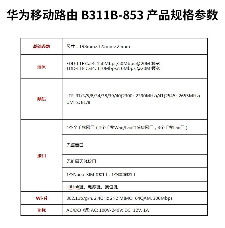 Huawei Prueba gratuita de 30 días Huawei 4G Router 2 WiFi portátil móvil Tarjeta enchufable de nivel empresarial Tarjeta de red inalámbrica B311B CPE B311B-853 4G Netcom completo 4 puertos de red Gigabit