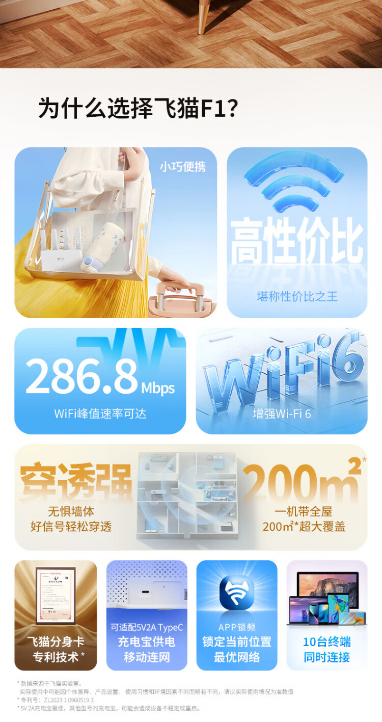 Feimao F1 4g enrutador móvil cpe triple conmutación de red sin tarjeta wifi portátil inalámbrico móvil wifi6 completo Netcom móvil 100M puerto de red enrutador doméstico