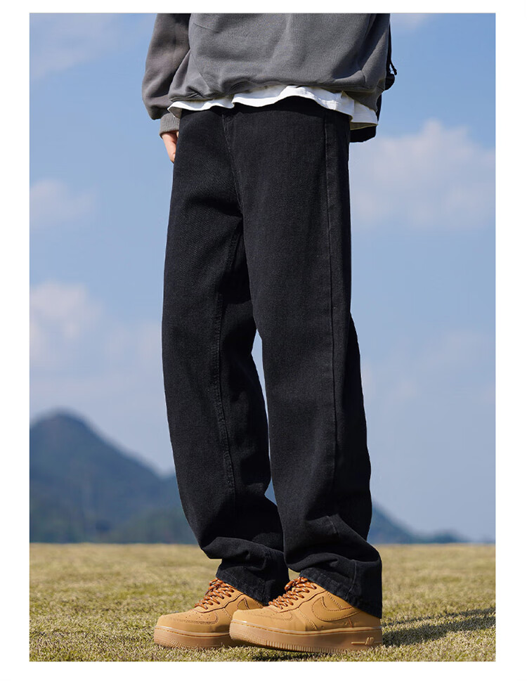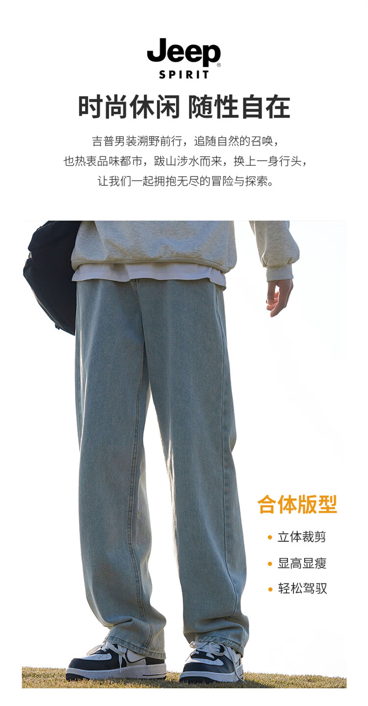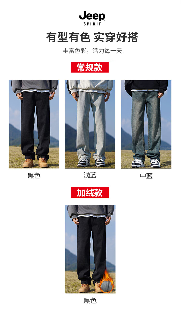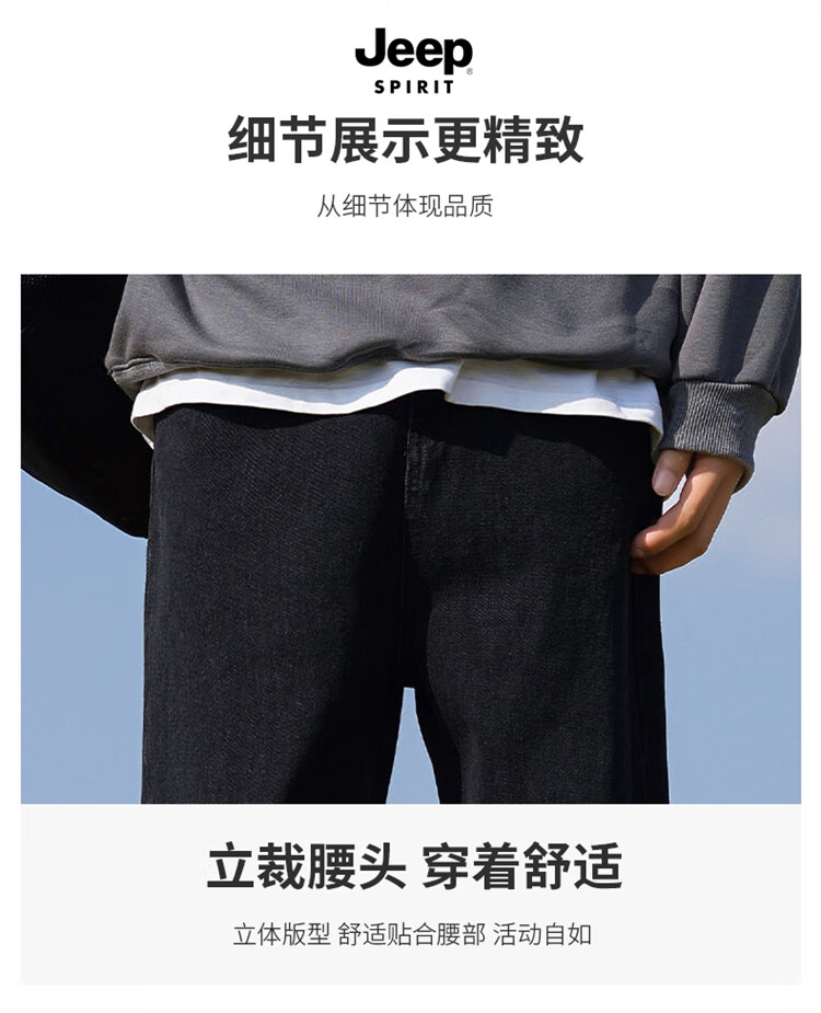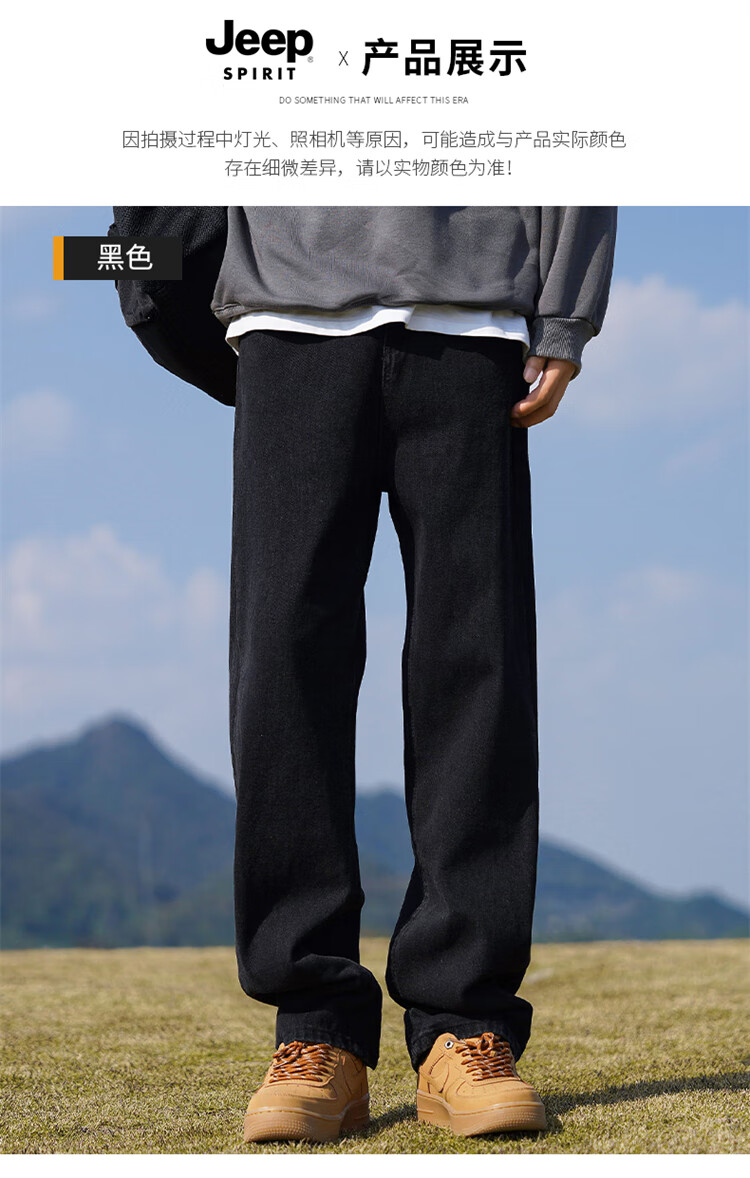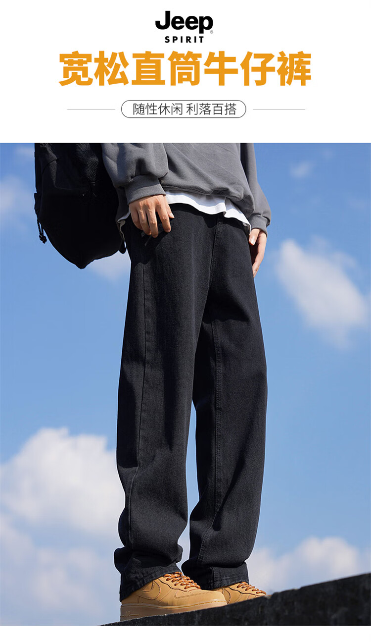JEEP SPIRIT吉普牛仔裤男士秋冬季直筒裤子男美式宽松休闲裤 黑色 XL