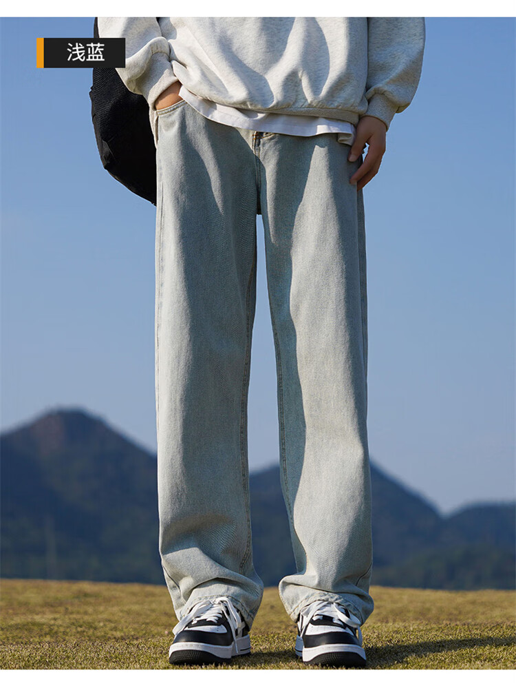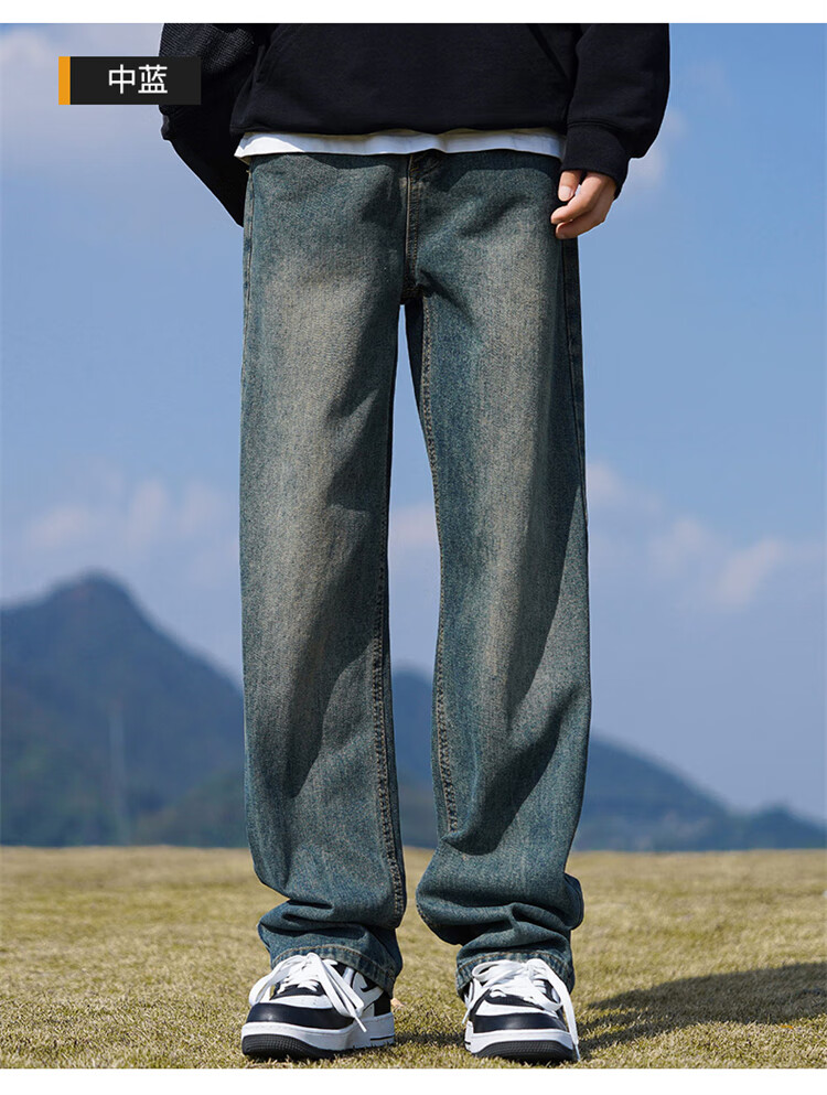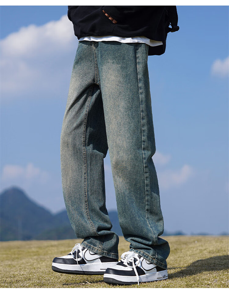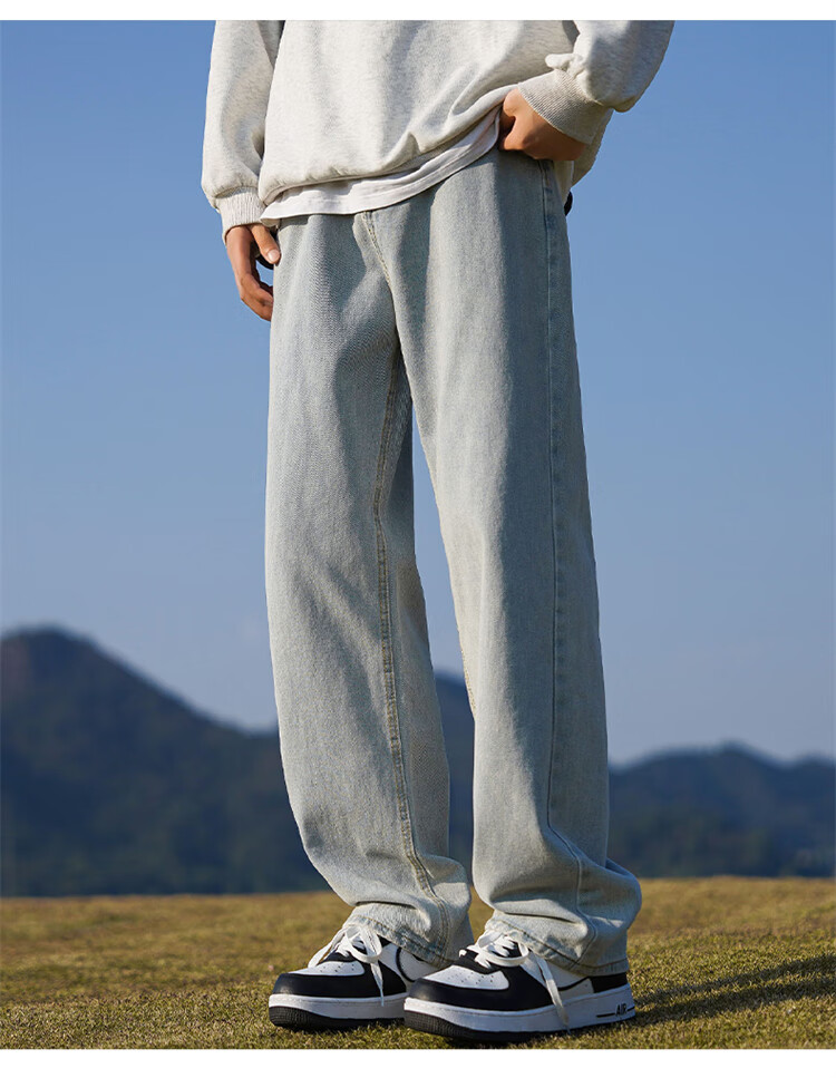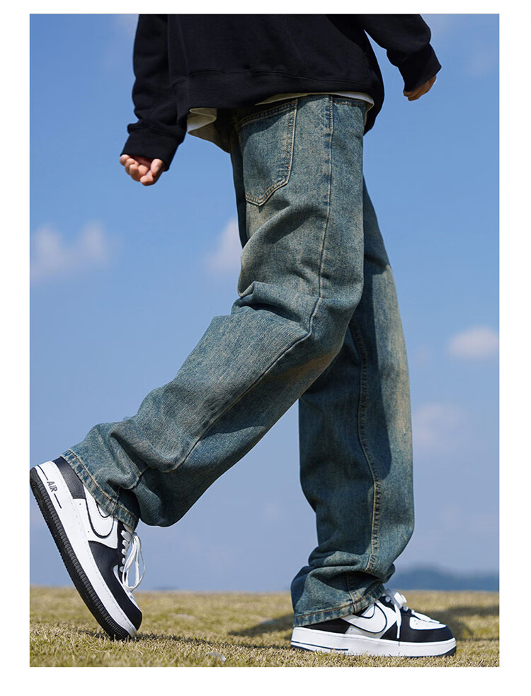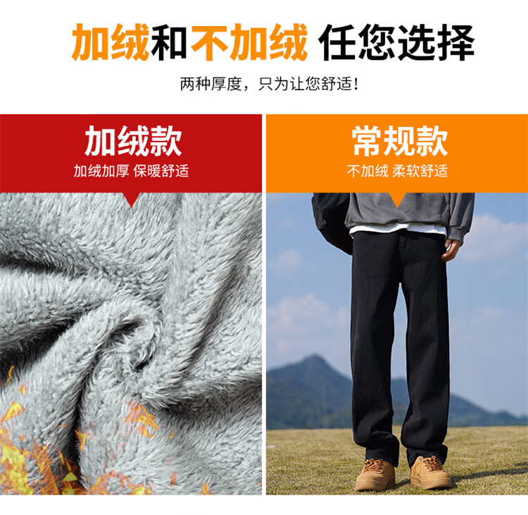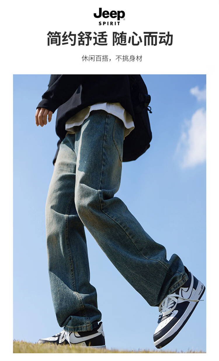 JEEP SPIRIT吉普牛仔裤男士秋冬季直筒裤子男美式宽松休闲裤 黑色 XL