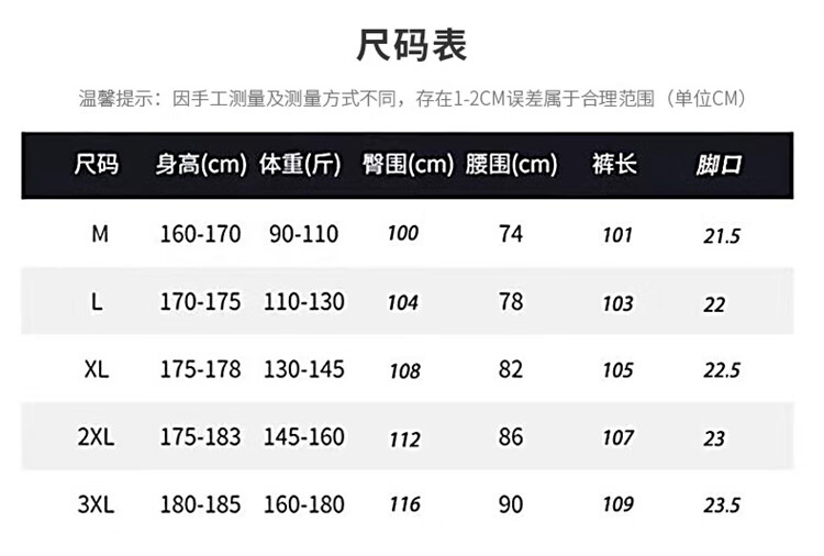 Outseam (cm) 99 cm 101.5 cm 104 cm 106.5 cm 109 cm