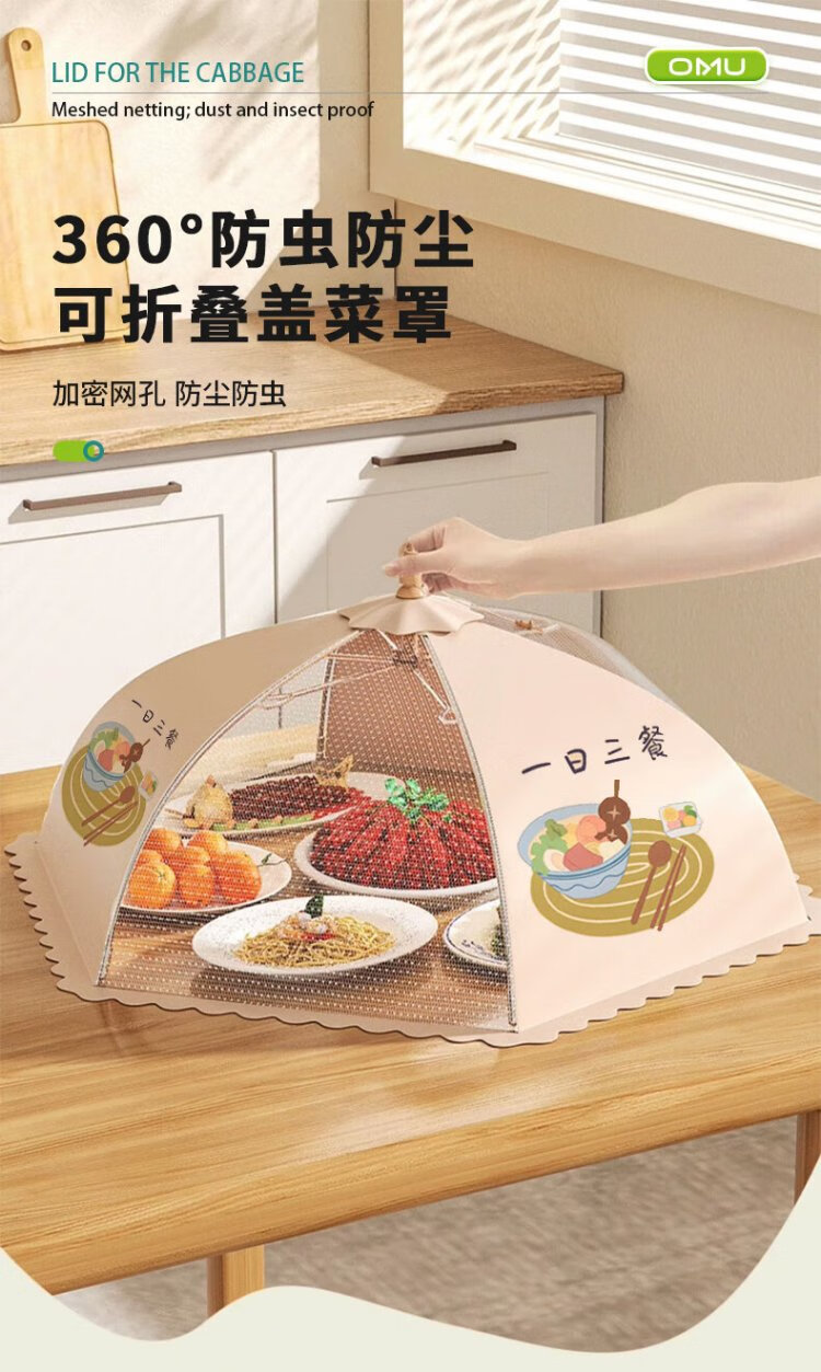 Aomeiyou dish cover, household meal cover, dust-proof and anti-fly artifact, leftover food cover, foldable round 80cm