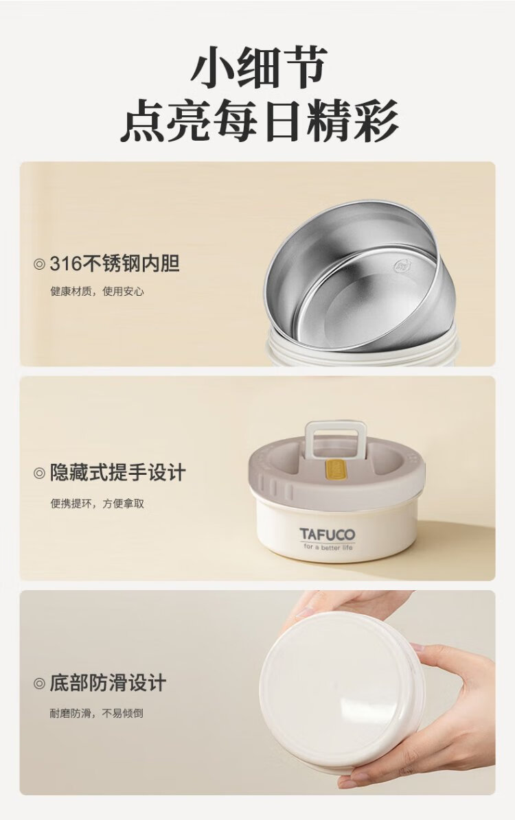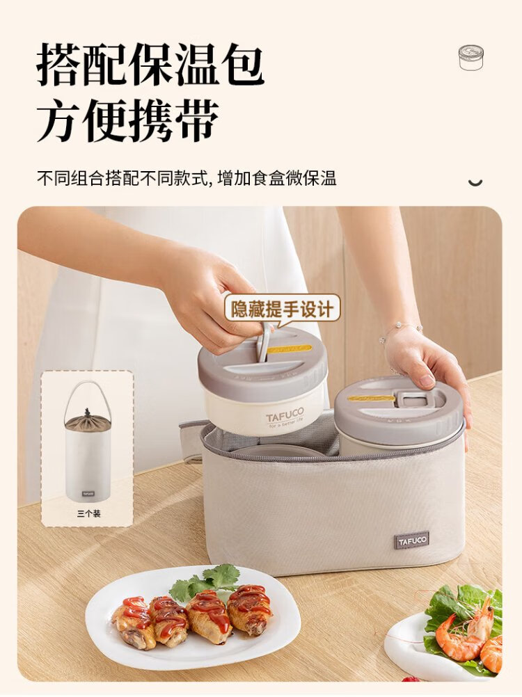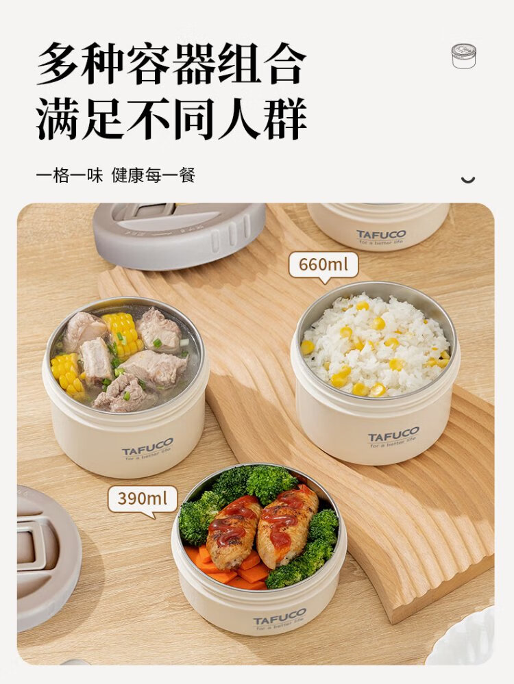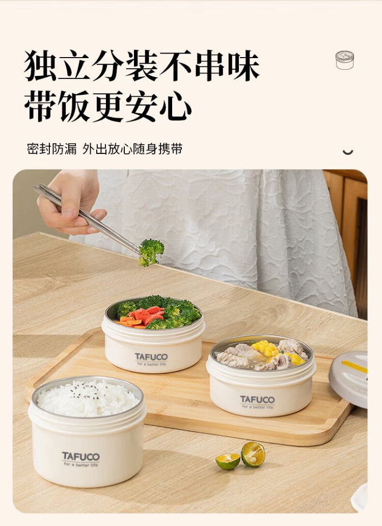泰福高(TAFUCO)饭盒专用316不锈钢食品级可微波炉餐盒上班族小学生打饭多层T5303