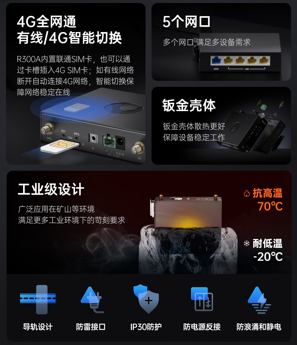 Bei Rui Dandelion R300A industrial router 4G full network CPE outdoor broadband 5G wireless routing card wifi mobile remote networking intranet penetration video surveillance 4G industrial router R300A newly upgraded 4th generation