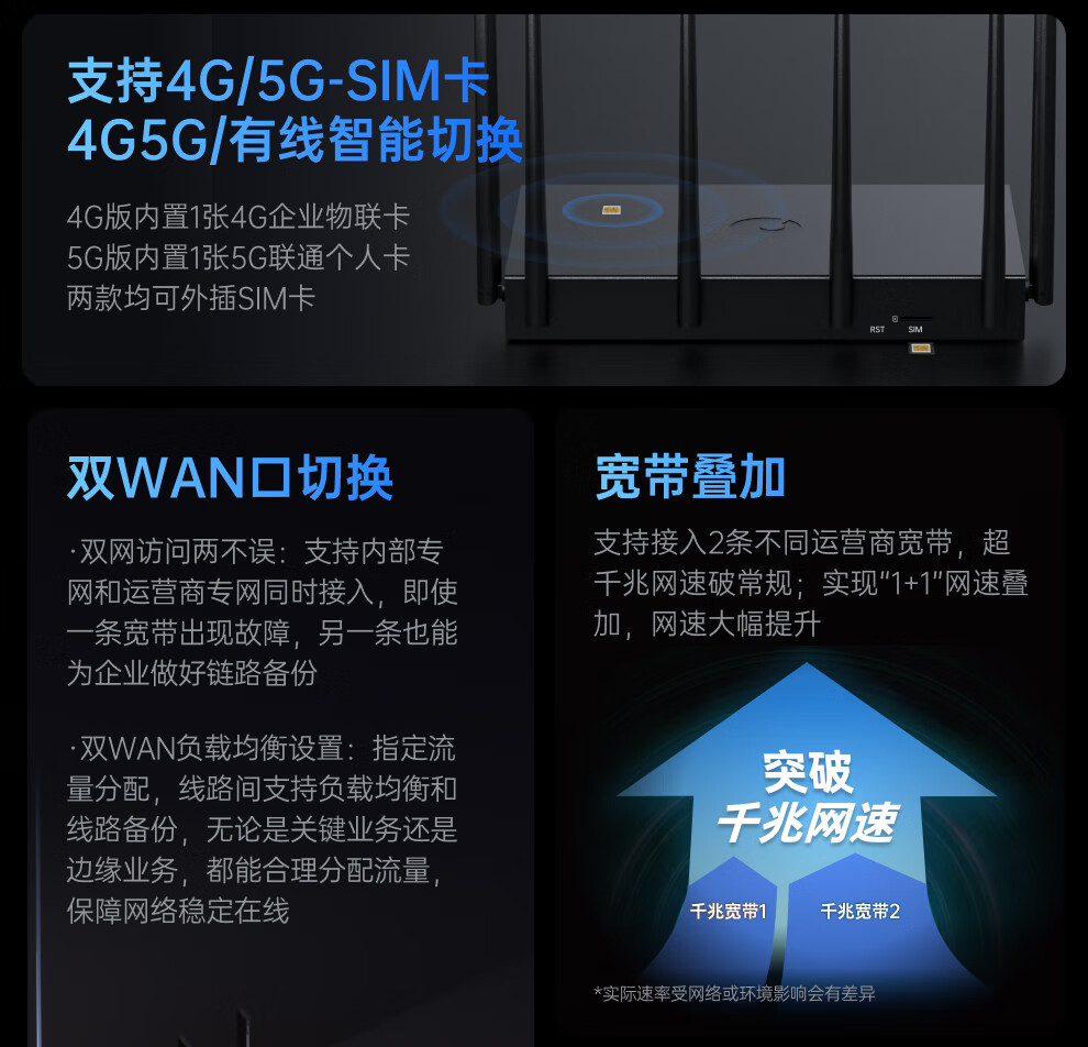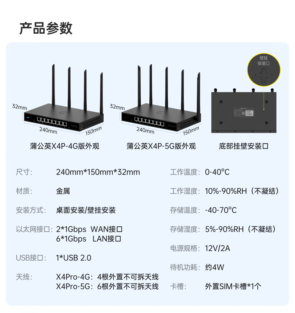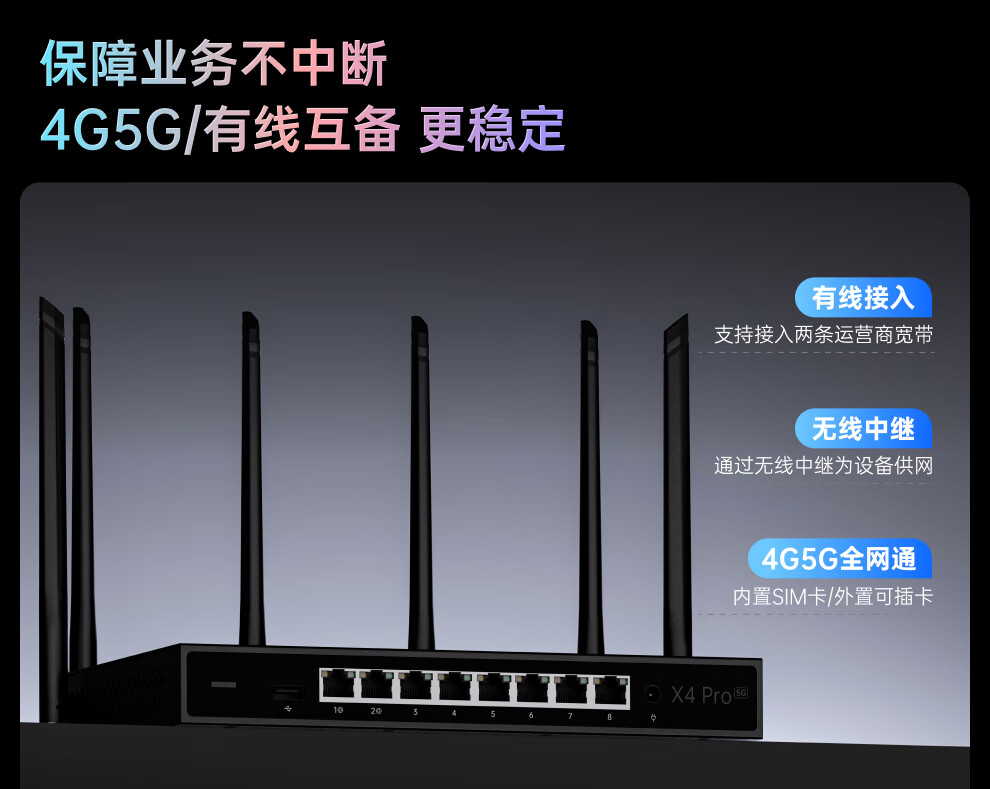 Berui Dandelion Enrutador Gigabit 5G de nivel empresarial Tarjeta SIM enchufable X4Pro CPE Agregación de puerto WAN dual WiFi de doble banda Red remota Puerto USB 8 puertos de red Seguro médico Red interna y externa X4Pro-5G
