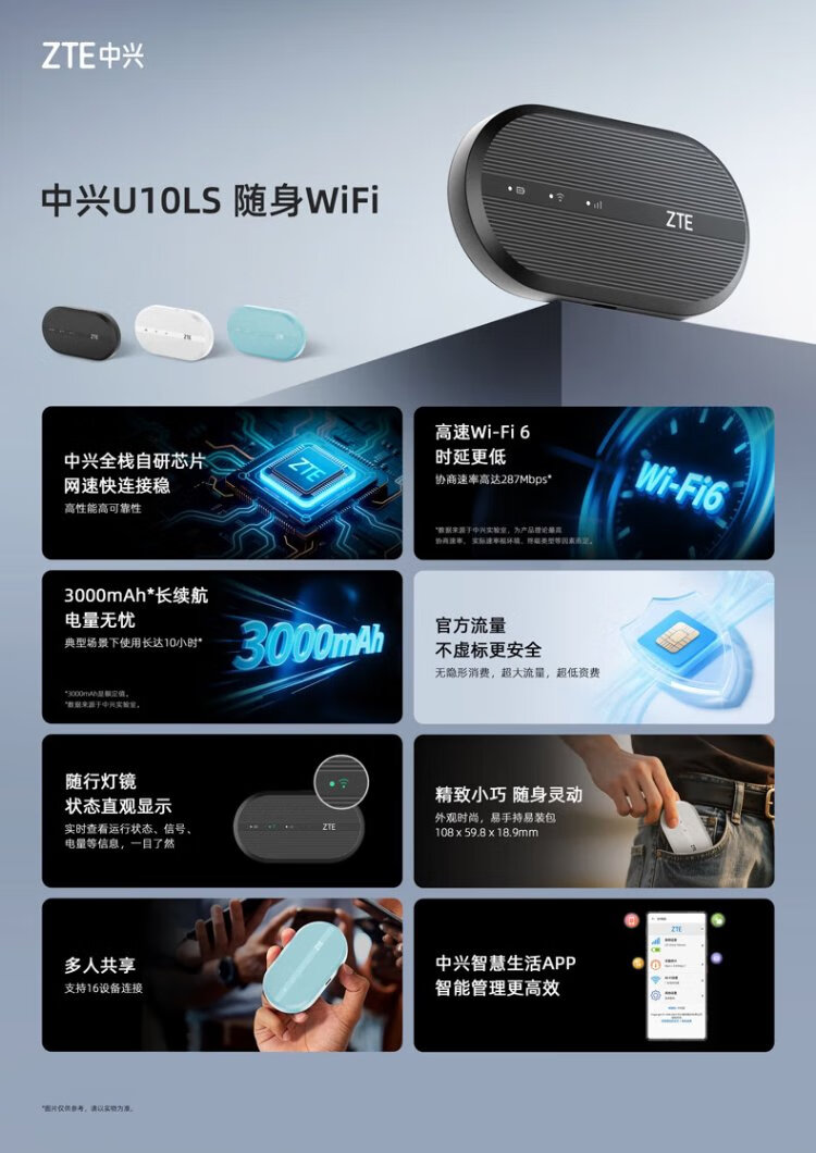 ZTE (ZTE) U10LS wifi portátil6 tarjeta wifi inalámbrica móvil sin tarjeta a bordo tarjeta de Internet para automóvil tesoro de Internet portátil compatible con equipos 5G / 4G tráfico general nacional modelo 2025