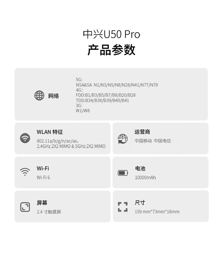 ZTE (ZTE) 5G portable WiFi6/10000 mAh agrégation de transporteurs de routage mobile sans carte connexion directe NFC à MU5120/U50 Pro commutation double réseau mensuel 1500G forfait mensuel