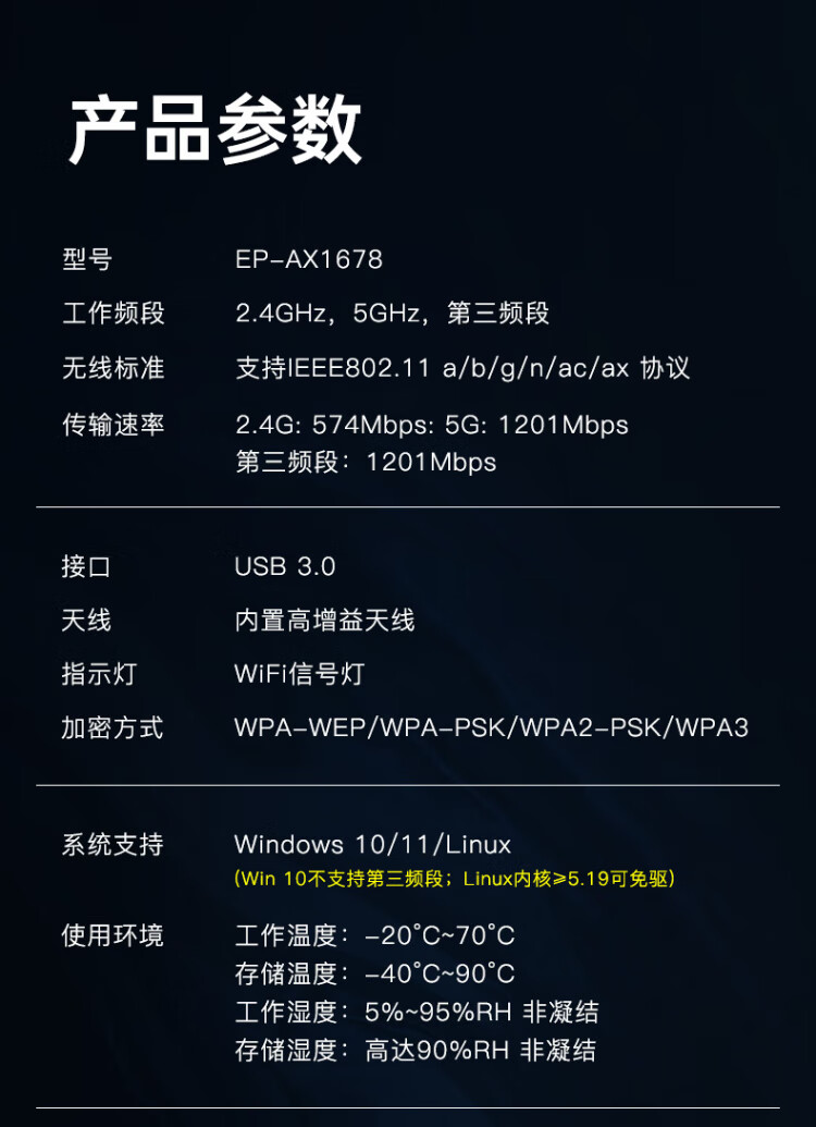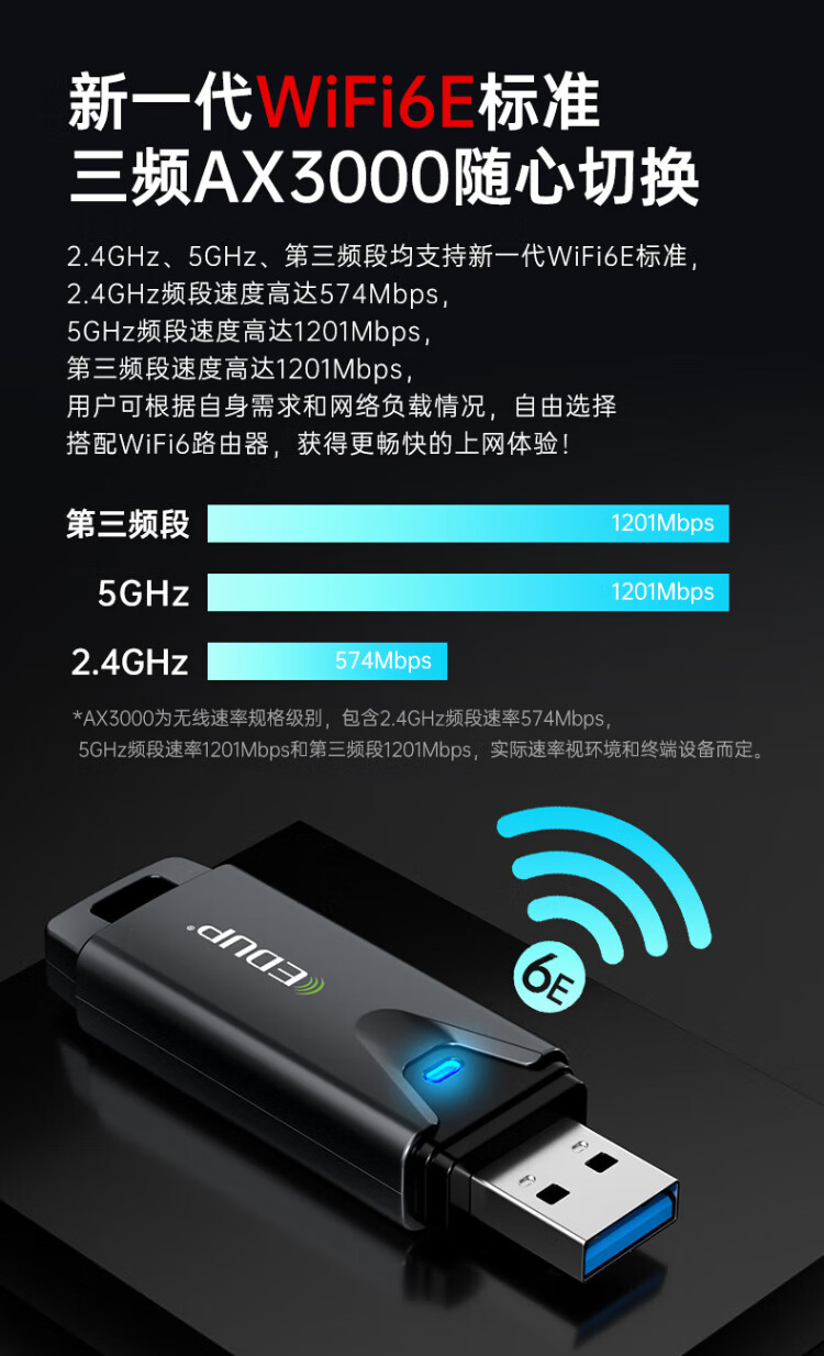 Yilian (EDUP) AX3000 WiFi6 Gigabit USB wireless network card desktop dedicated dual-band 5G high-speed wireless wifi receiver laptop network receiver EP-AX1678