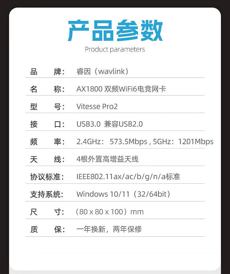 Wavlink Pro2 WiFi6 Wireless-Netzwerkkarte AX1800M Dual-Band 5G Gigabit E-Sport USB Wireless-Netzwerkkarte, treiberfreier Desktop-Notebook-Wireless-WLAN-Empfänger-Sender