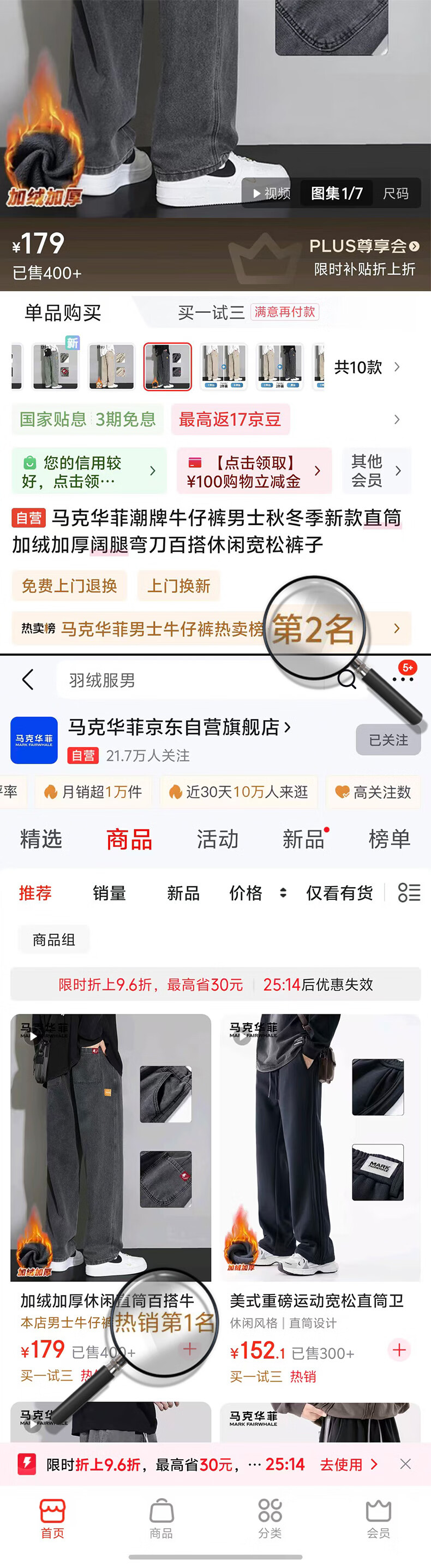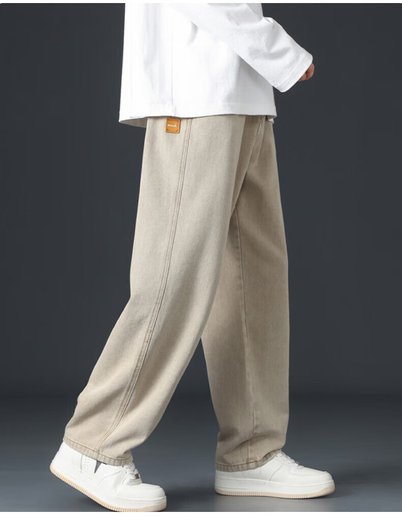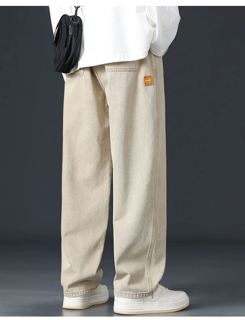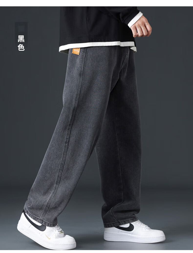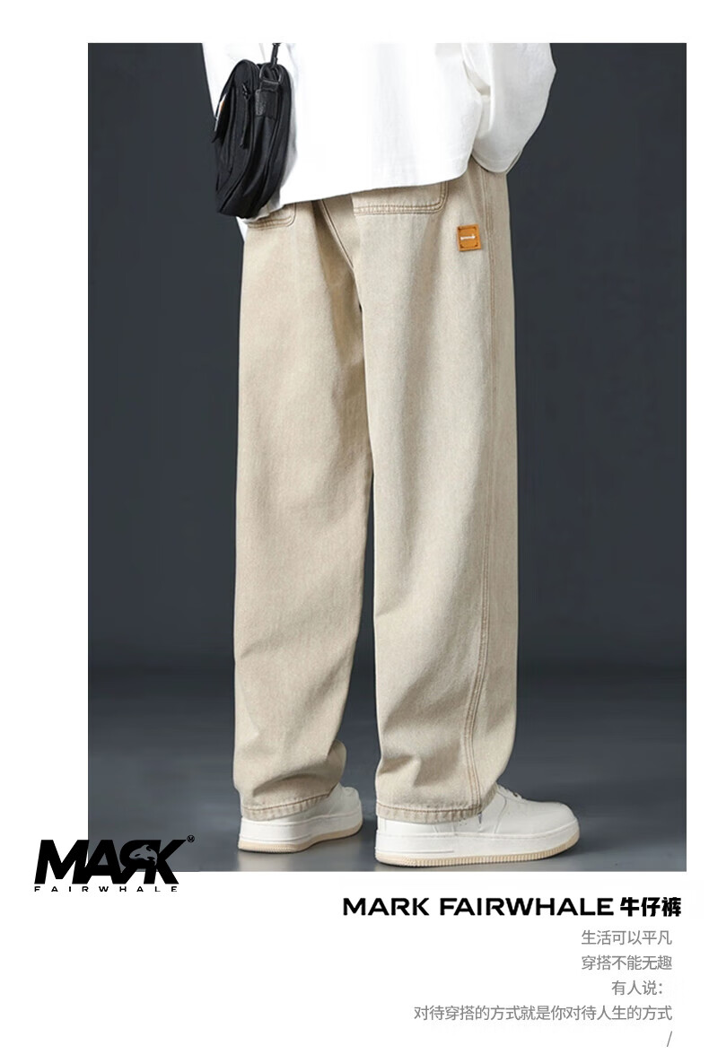 MARK FAIRWHALE trendy brand jeans for men in autumn and winter new style straight plus velvet thickened wide-leg scimitar versatile casual loose pants