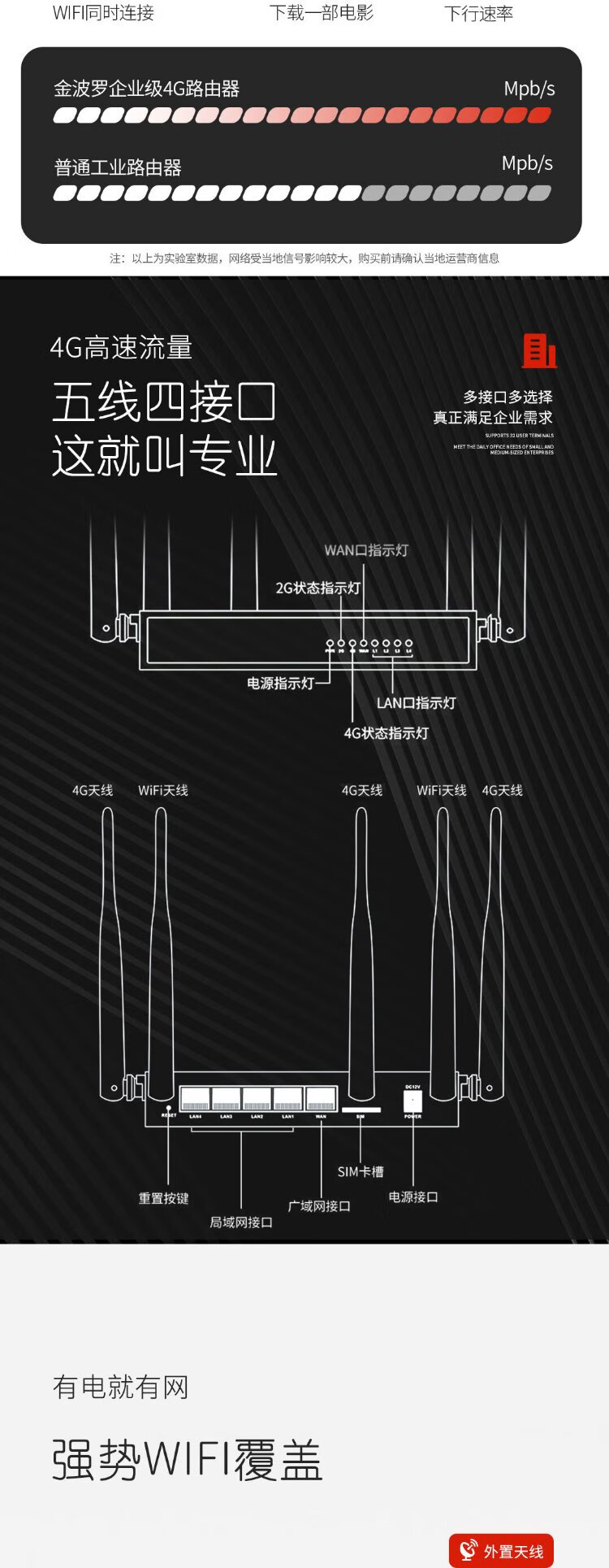 Enrutador wifi portátil de tráfico ilimitado móvil de tres redes sin tarjeta Jinpolo 4g Enrutador inalámbrico de nivel comercial empresarial CPE a través de la señal de pared disponible en Mongolia Interior Enrutador 4G de nivel empresarial (cinco puertos de red) + paquete de tráfico de 1 mes