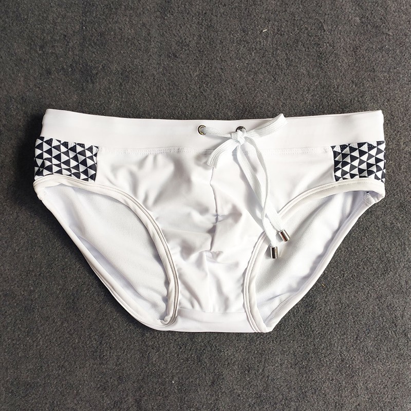 UXH泳裤三角男防尴尬低腰带护垫男士海边游泳衣潮男时尚低腰沙滩男生 白色 L