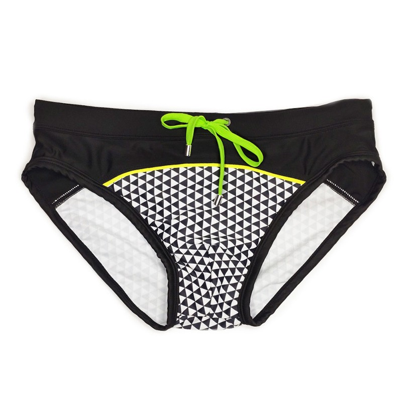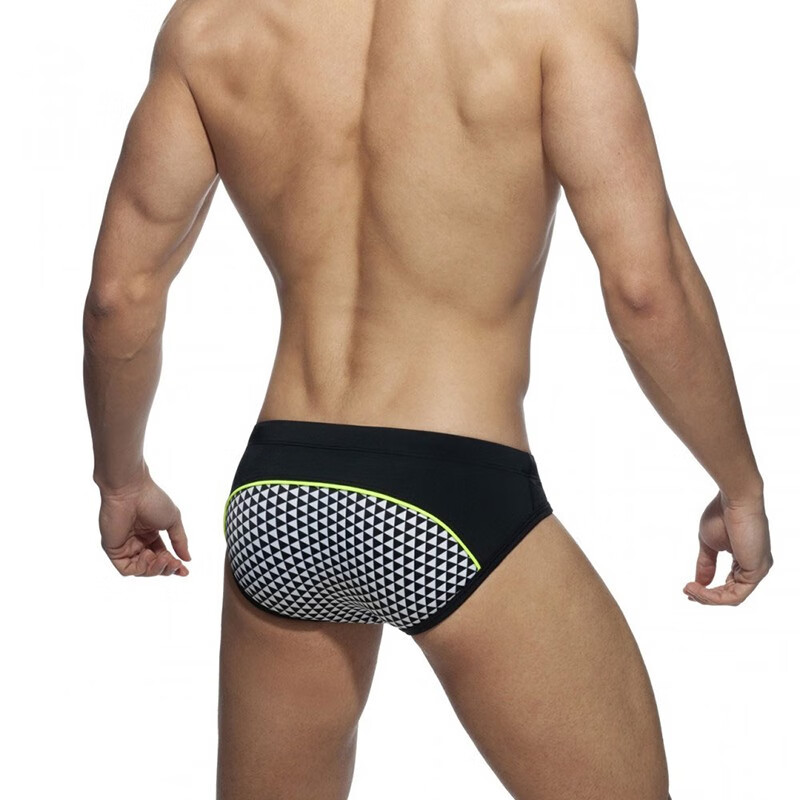 UXH男三角泳裤格子拼色黑色游泳裤好品质涤纶氨纶面料泳池沙滩海洋 黑色 XL