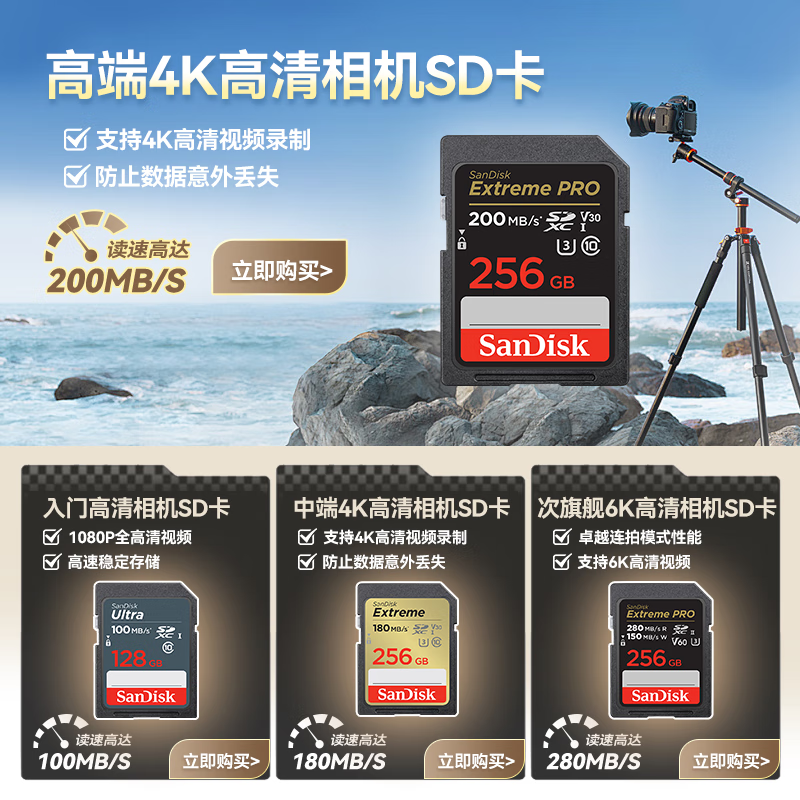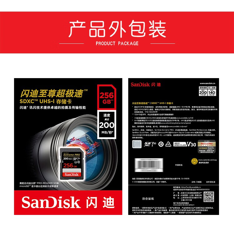 闪迪(SanDisk)SD卡 4K高清单反相机内存卡 数码相机存储卡 至尊超极速 128G【送读卡器】 读速200M/S