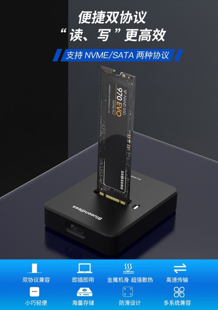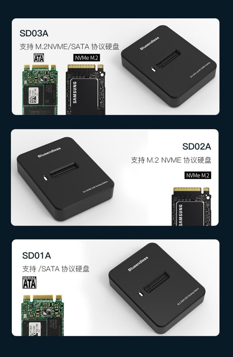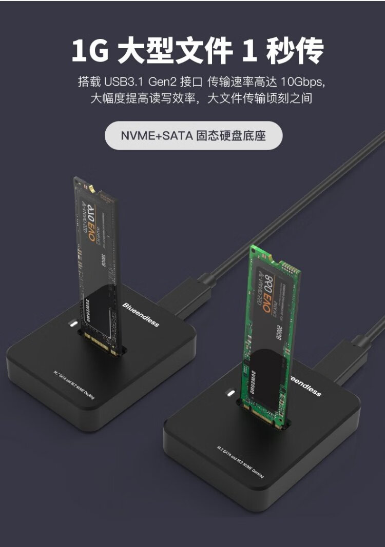 BLUEENDLESS BLUEENDLESS BLUEENDLESS hard drive base dual-protocol hard drive enclosure nvme/ngf to USB3.1gen2 SD03A NVME/NGFF dual-protocol universal with single line