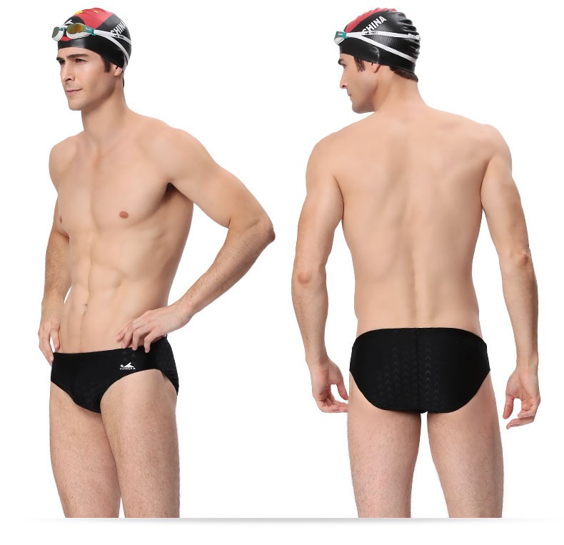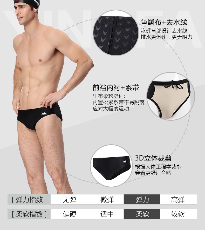 Yingfa men's swimming briefs fish scale pattern low resistance racing swimming trunks quick drying professional competition training swimming trunks men's hot spring black S recommended weight 35-50Jin Jin equals 0.5 kg
