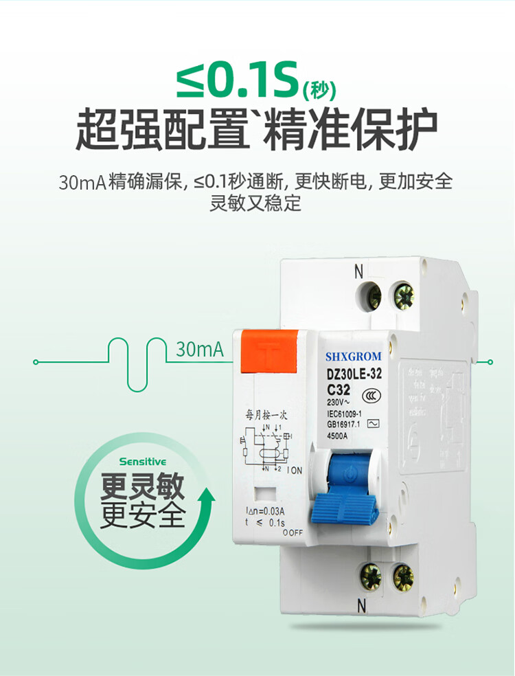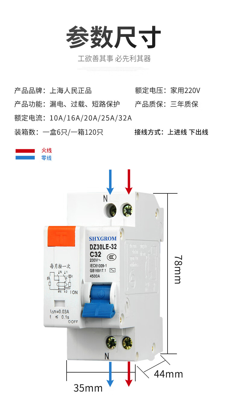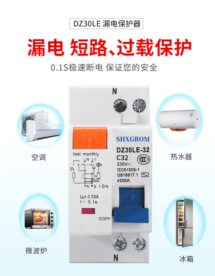 SRCN Shanghai People's DZ30LE-32 C16C20C25 household 220V leakage protector DPN double in and double out air switch 20A