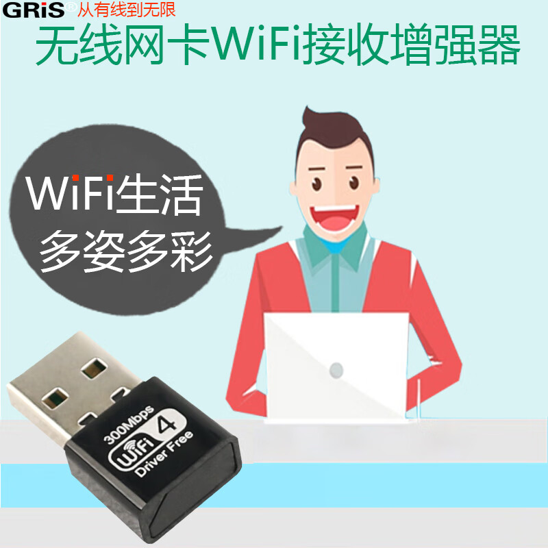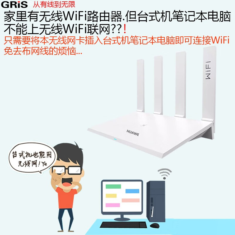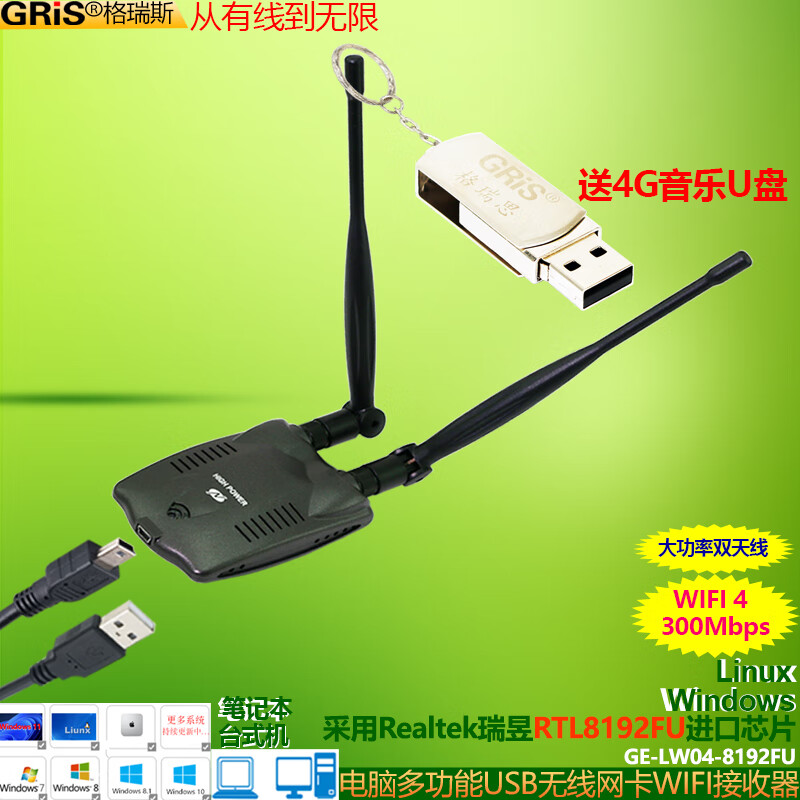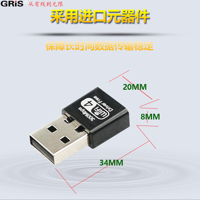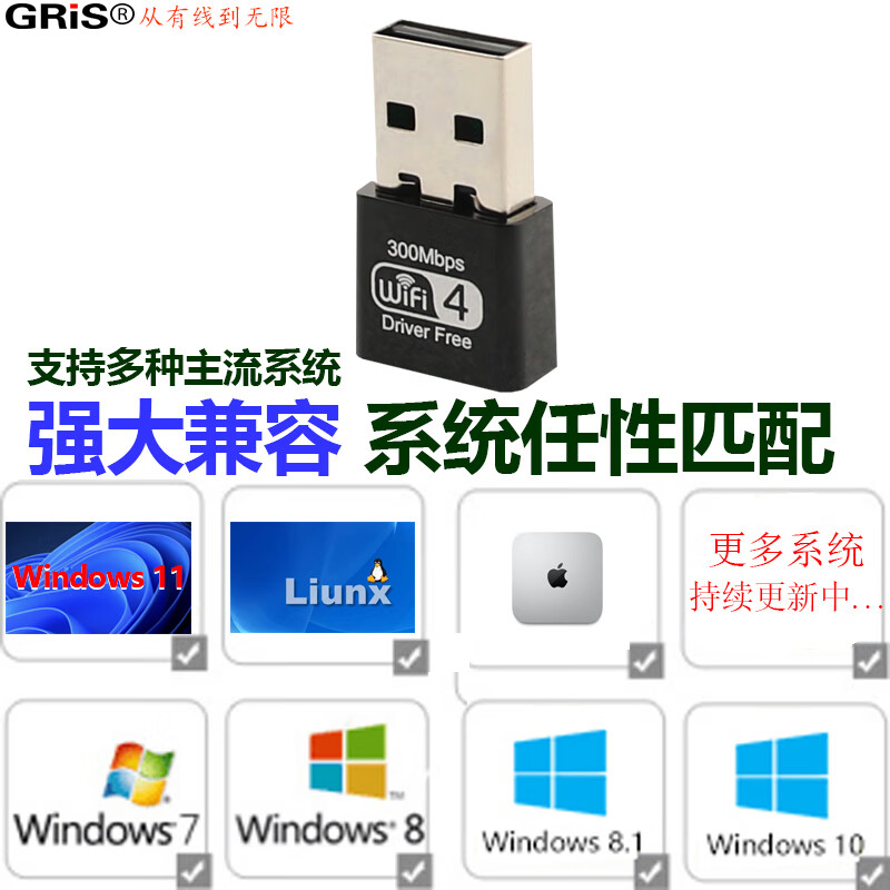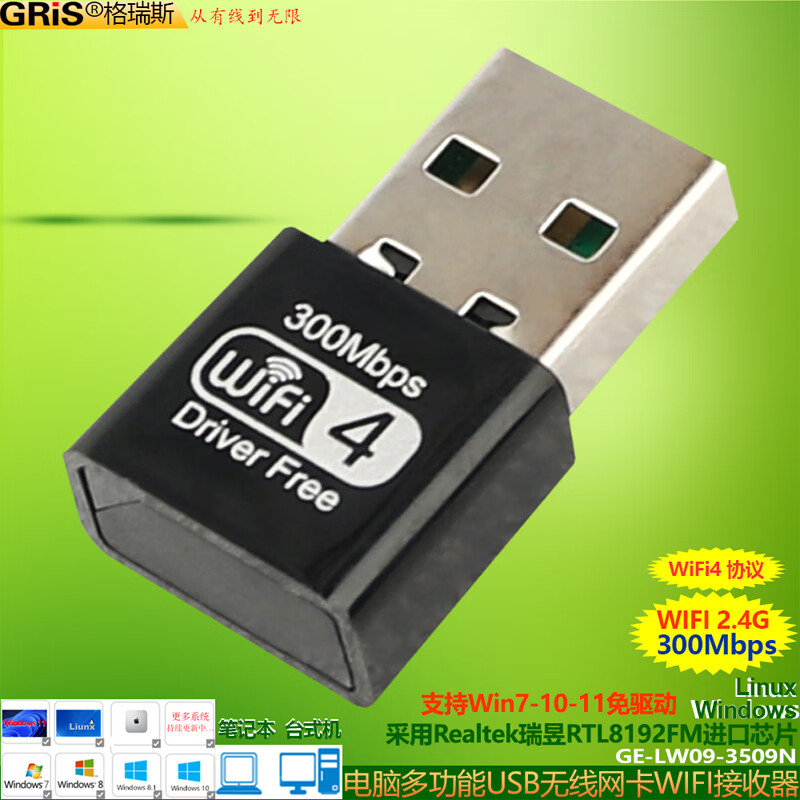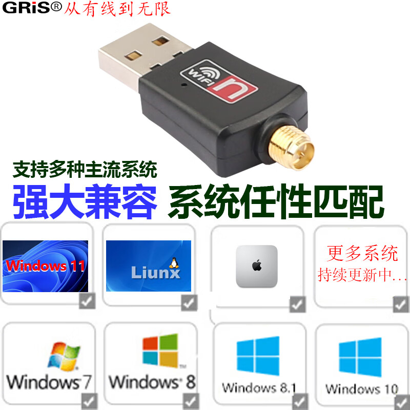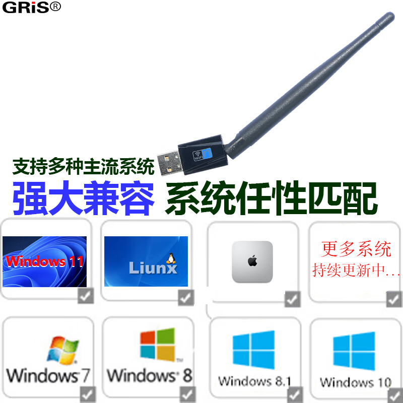 GRIS WIN11免驱电脑USB无线网卡RTL8192EU台式机笔记本WIFI接收器Realtek电视机顶盒8192CUS瑞昱8192FM 8192EUS芯片 迷你内置天线 8192-E