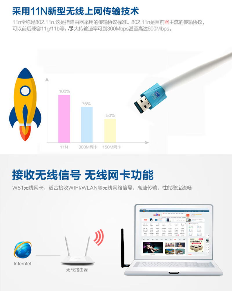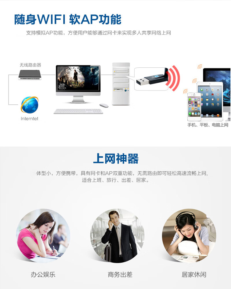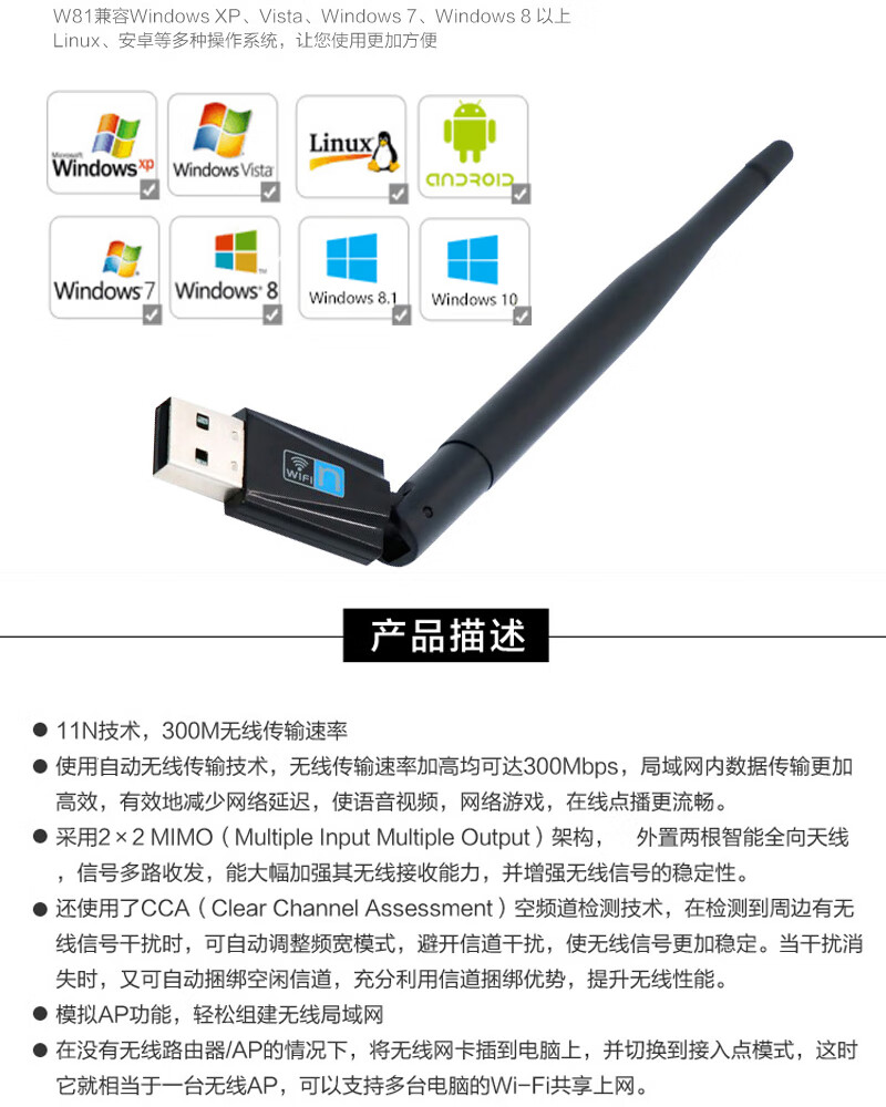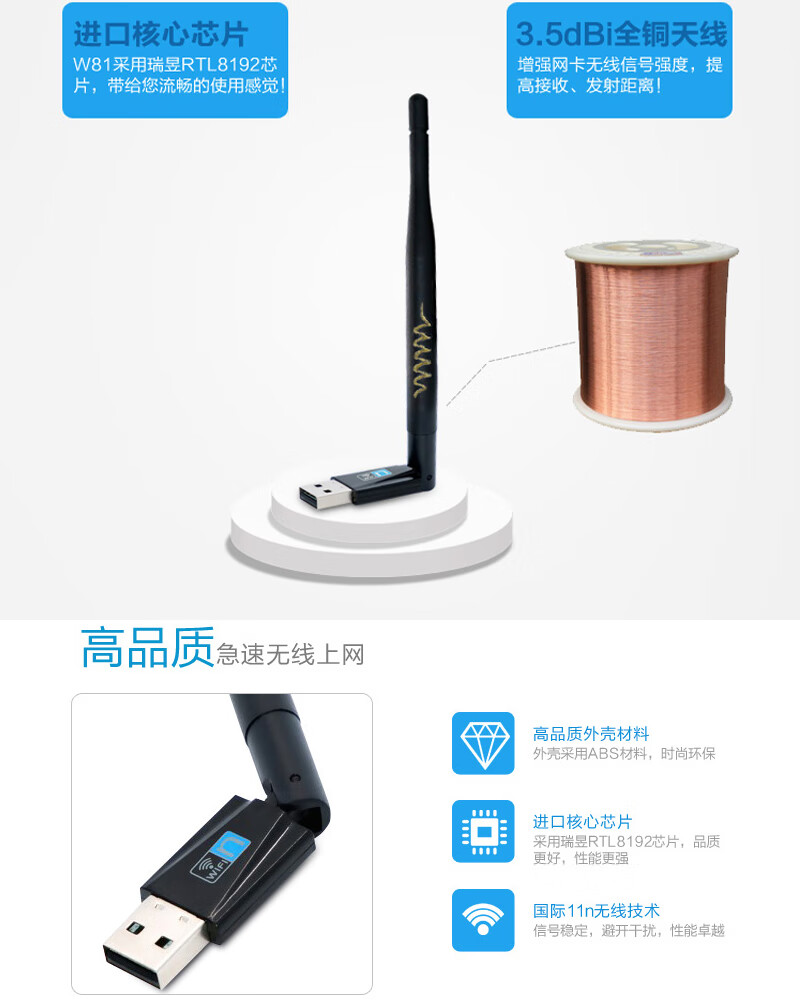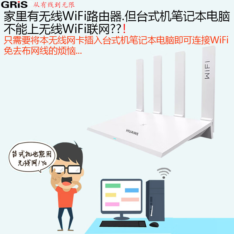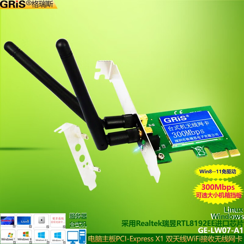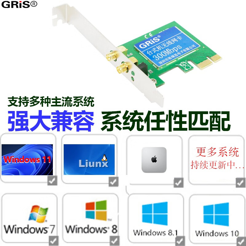GRIS WIN11免驱电脑USB无线网卡RTL8192EU台式机笔记本WIFI接收器Realtek电视机顶盒8192CUS瑞昱8192FM 8192EUS芯片 迷你内置天线 8192-E