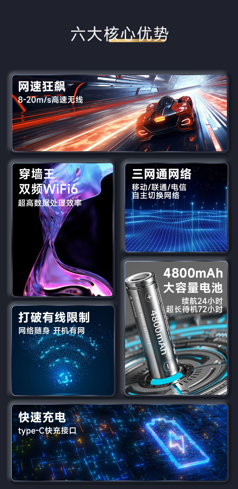 Duoyang portátil wifi tráfico tarjeta libre portátil wifi móvil portátil inalámbrico wifi6 enrutador tres redes universal 2025 nuevo wifi inalámbrico 4800 mAh WiFi6 de doble banda + chip zhanrui