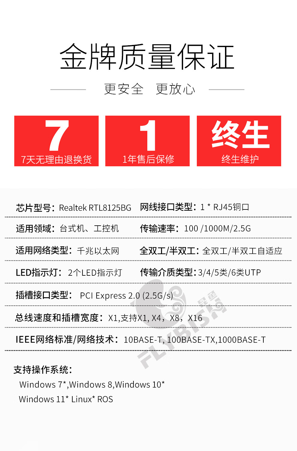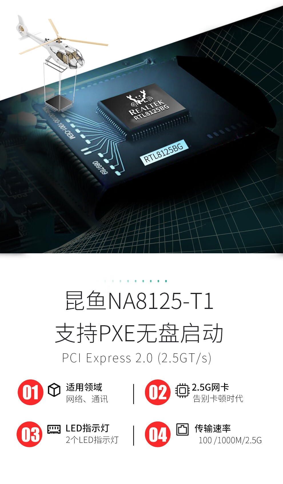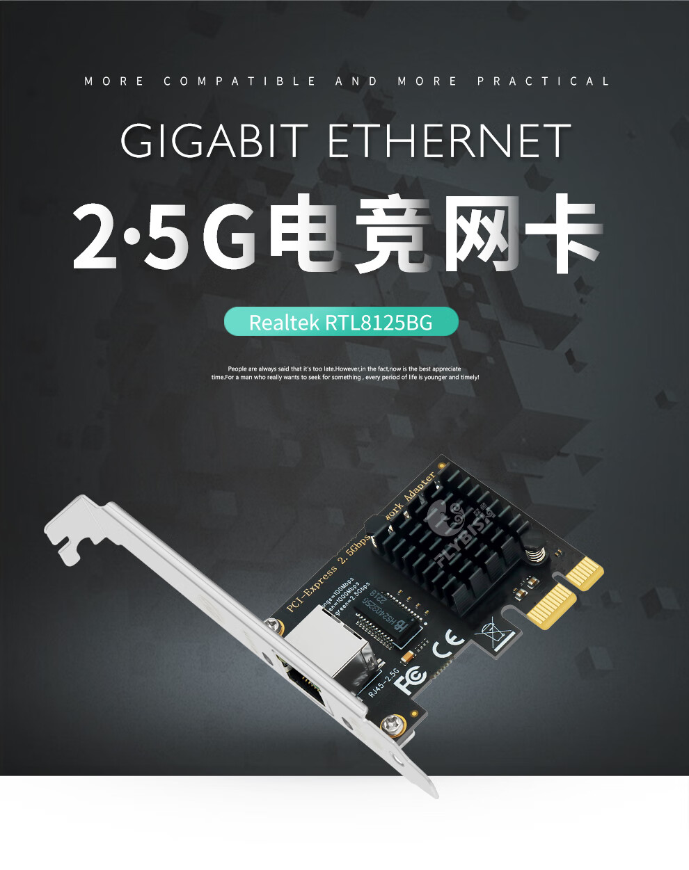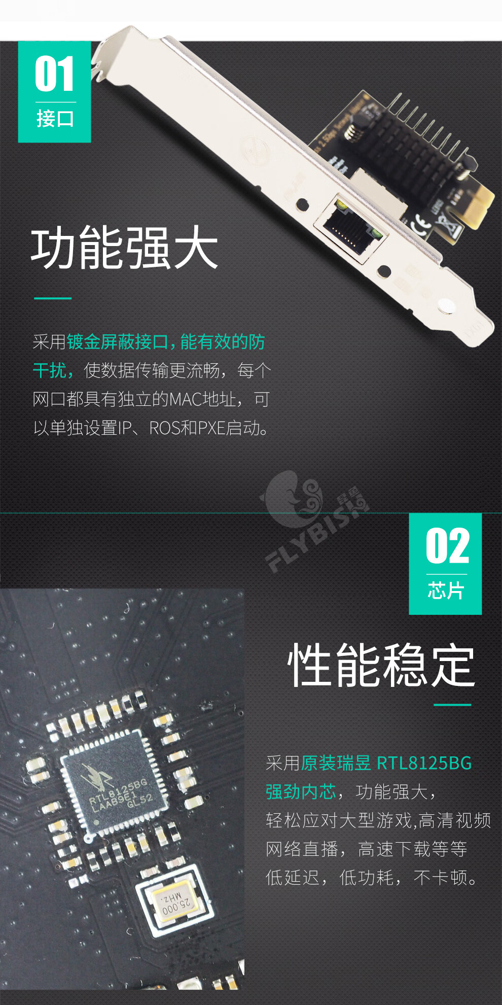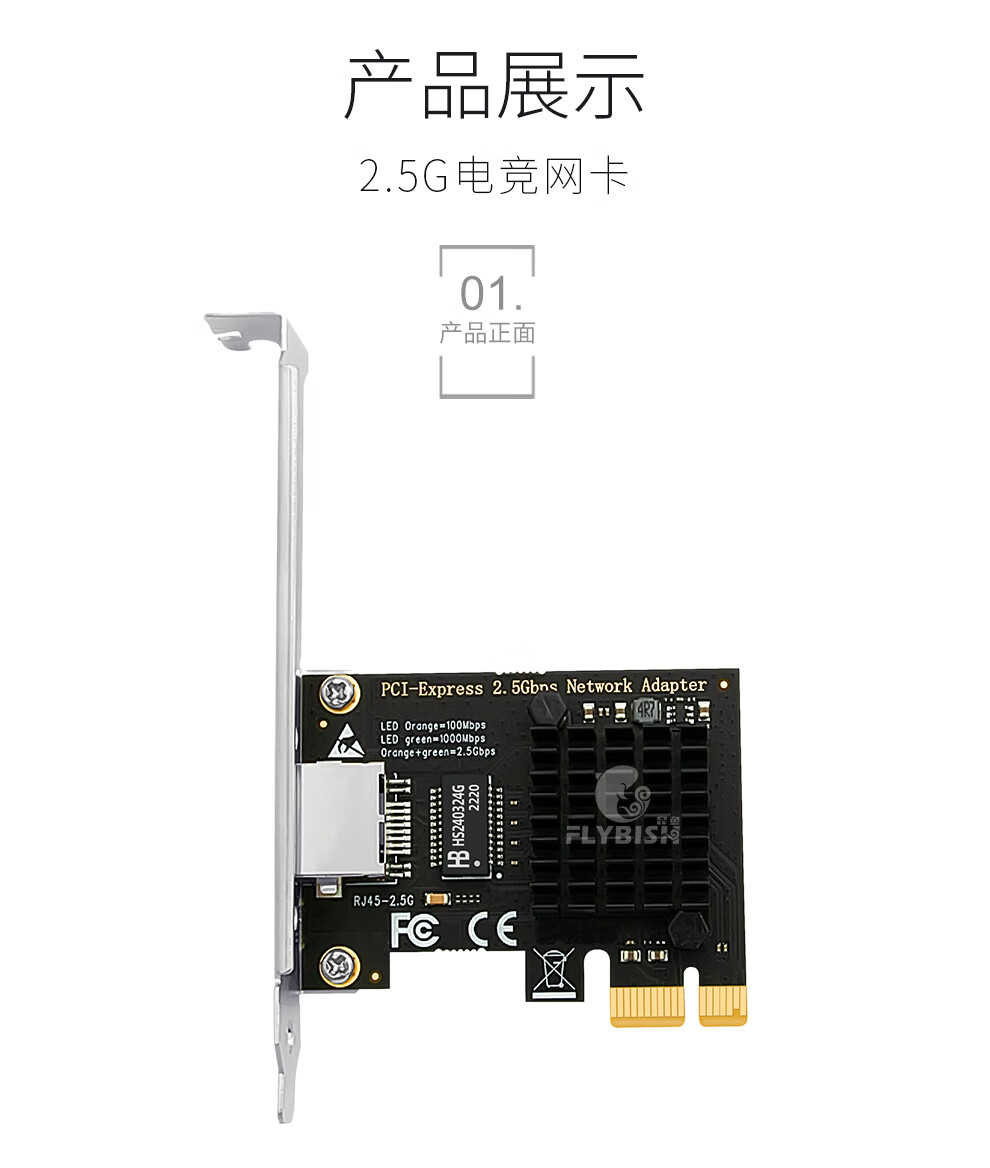 Kunyu (FLYBISH) PCIEx1 2.5G single-port dual-port four-port network card RTL8125BG chip 2500M e-sports gaming desktop wired network card 2.5G single-port RTL8125BG PXE diskless Internet cafe