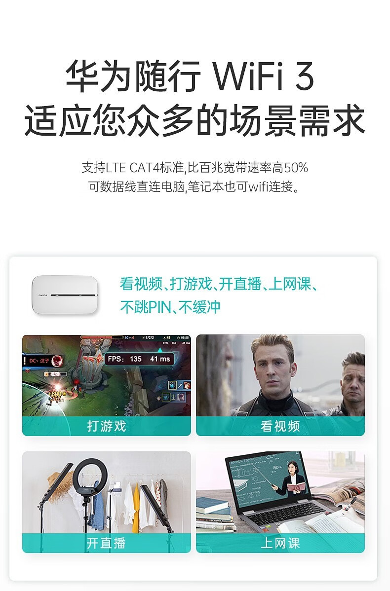 Huawei with Tianjitong traffic card Huawei portable wifi3 new mobile accompanying 4g router wireless network card plug-in truck-mounted 4G full network new E5576-820 white丨Tianjitong version
