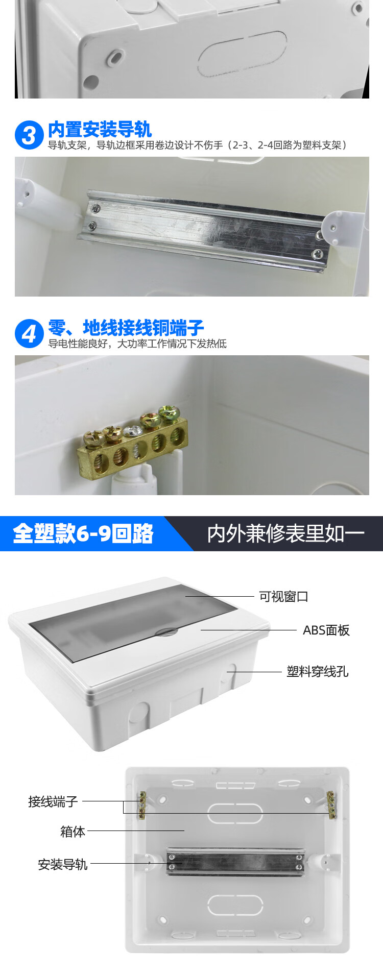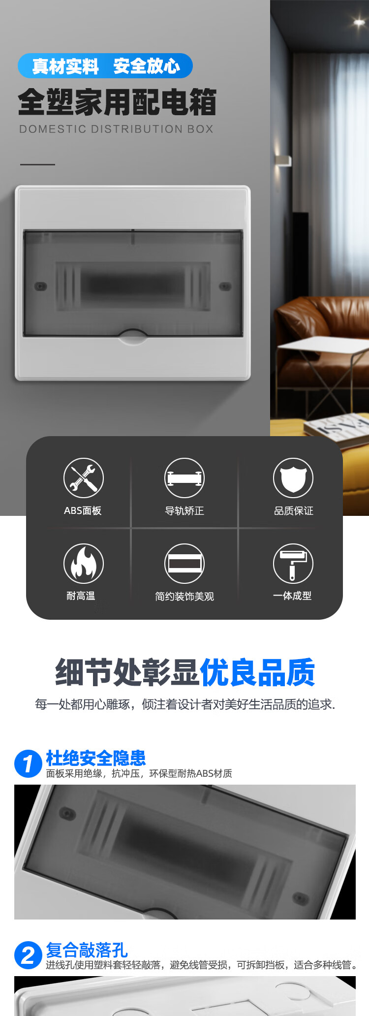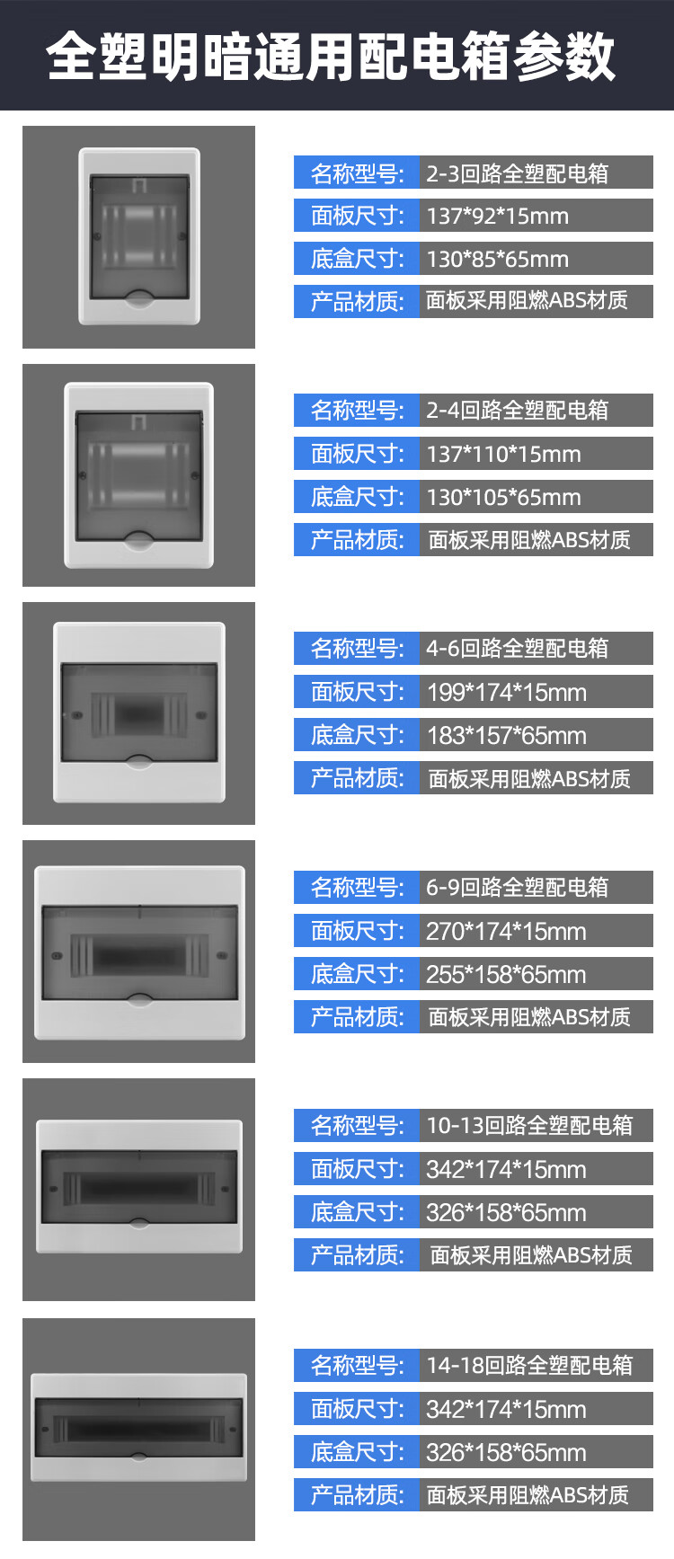 USP International Électricien Boîte de distribution domestique Boîte d'alimentation principale ouverte Boîte de protection de commutateur d'air Boîte de câblage de disjoncteur universel clair et foncé Boîte électrique solide Entièrement en plastique Clair et foncé Universel 2-3 circuits