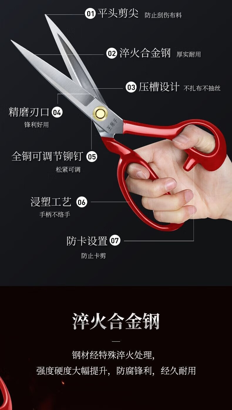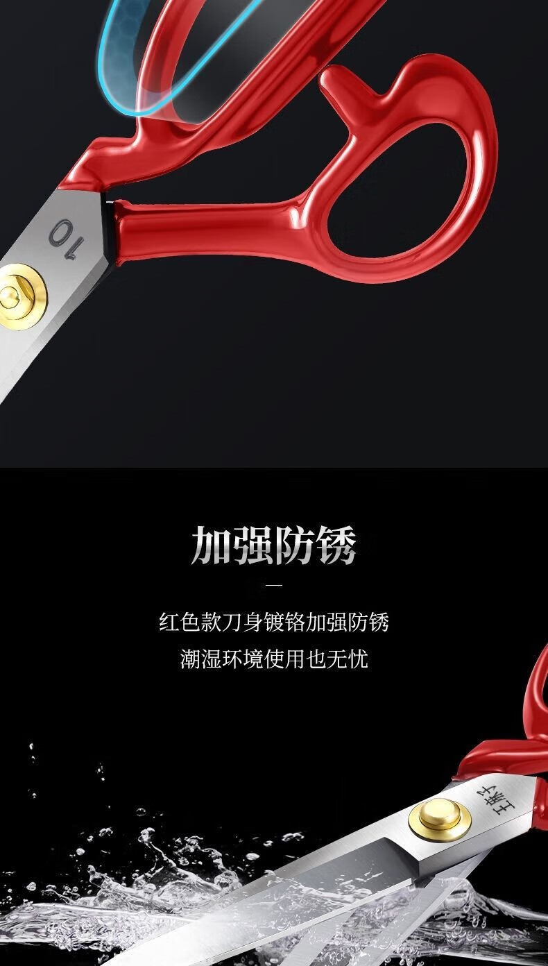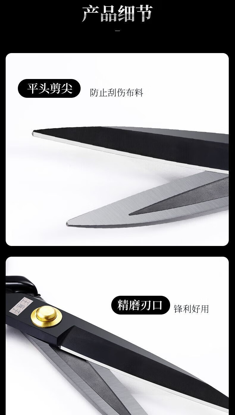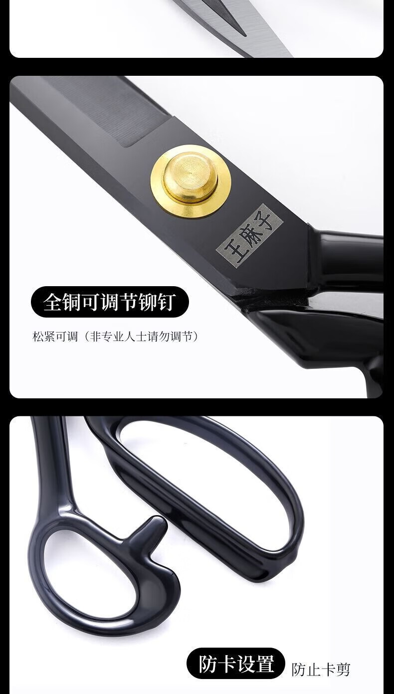 王麻子剪刀家用剪子剪布裁缝剪刀服装手工大剪刀工业用剪线头缝纫剪刀 12英寸防锈专业裁缝剪刀【黑】