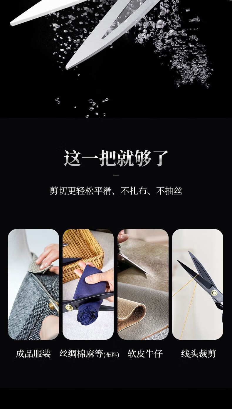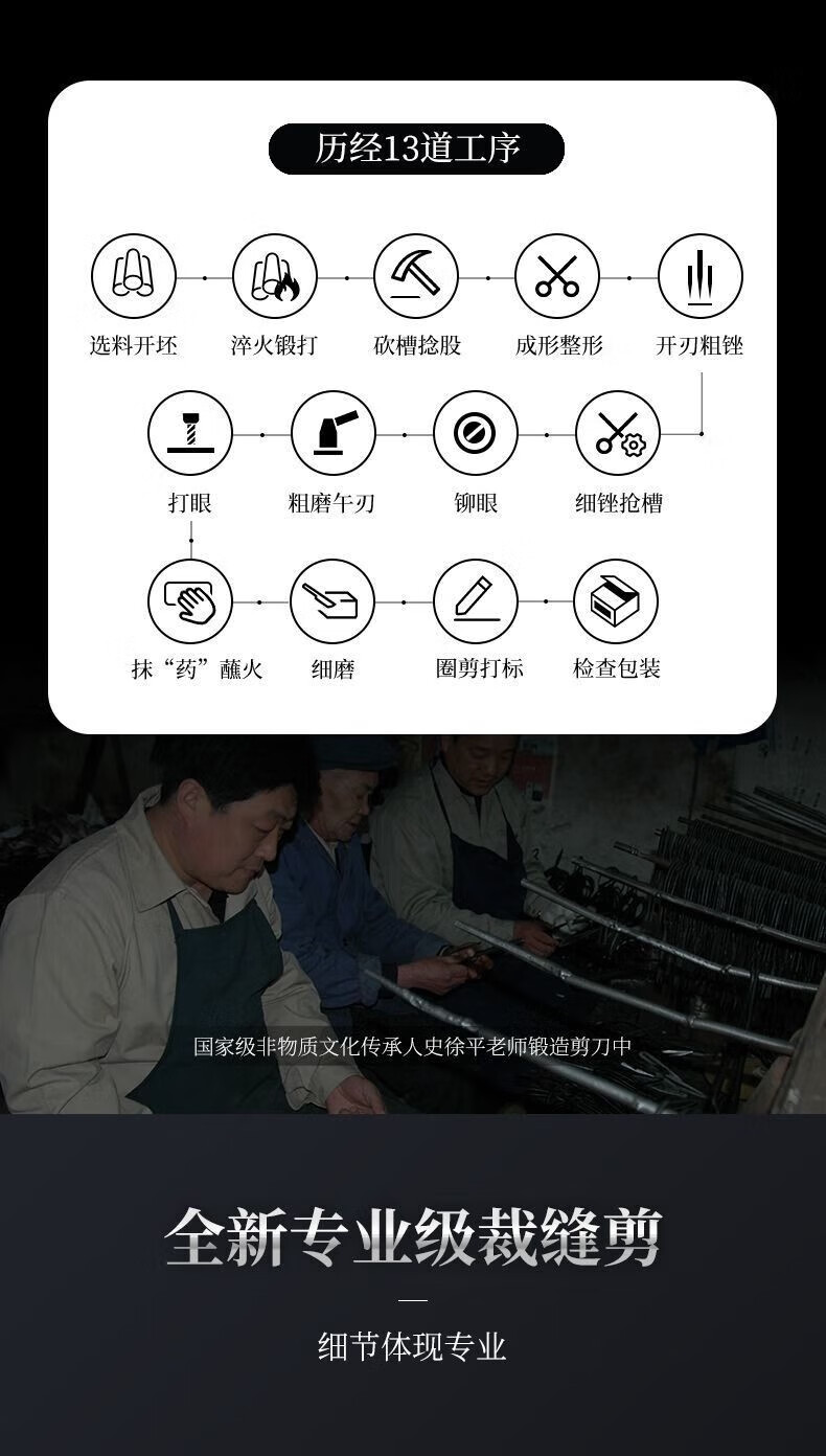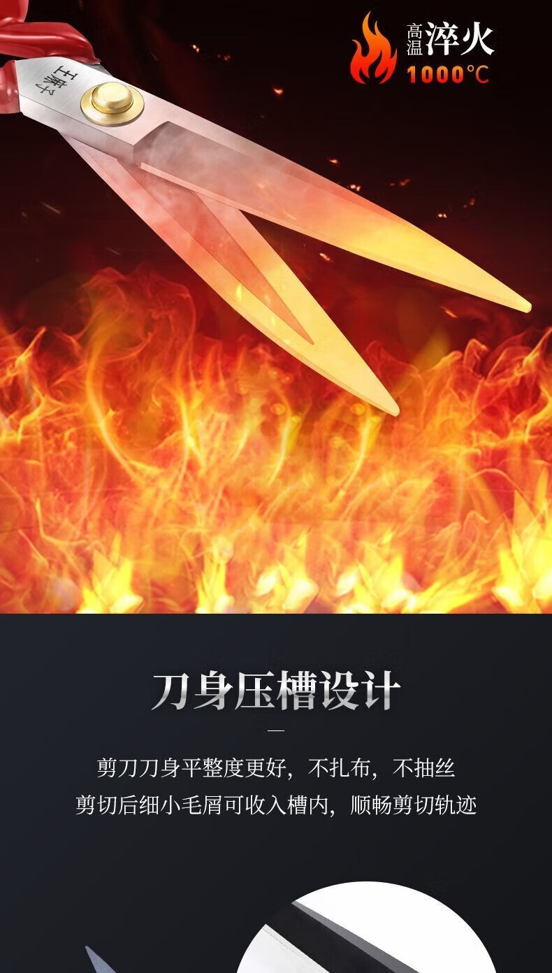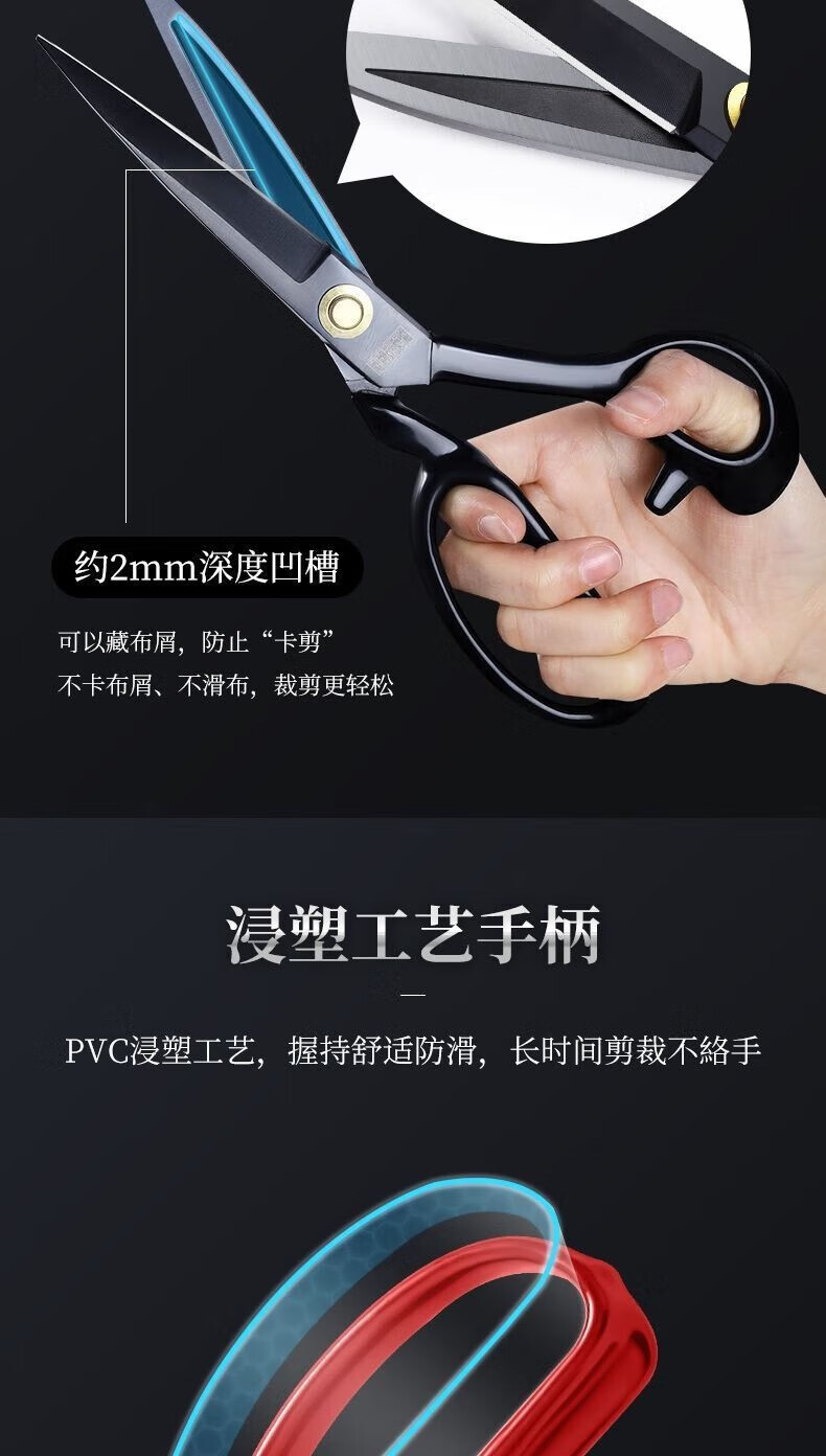 王麻子剪刀家用剪子剪布裁缝剪刀服装手工大剪刀工业用剪线头缝纫剪刀 12英寸防锈专业裁缝剪刀【黑】