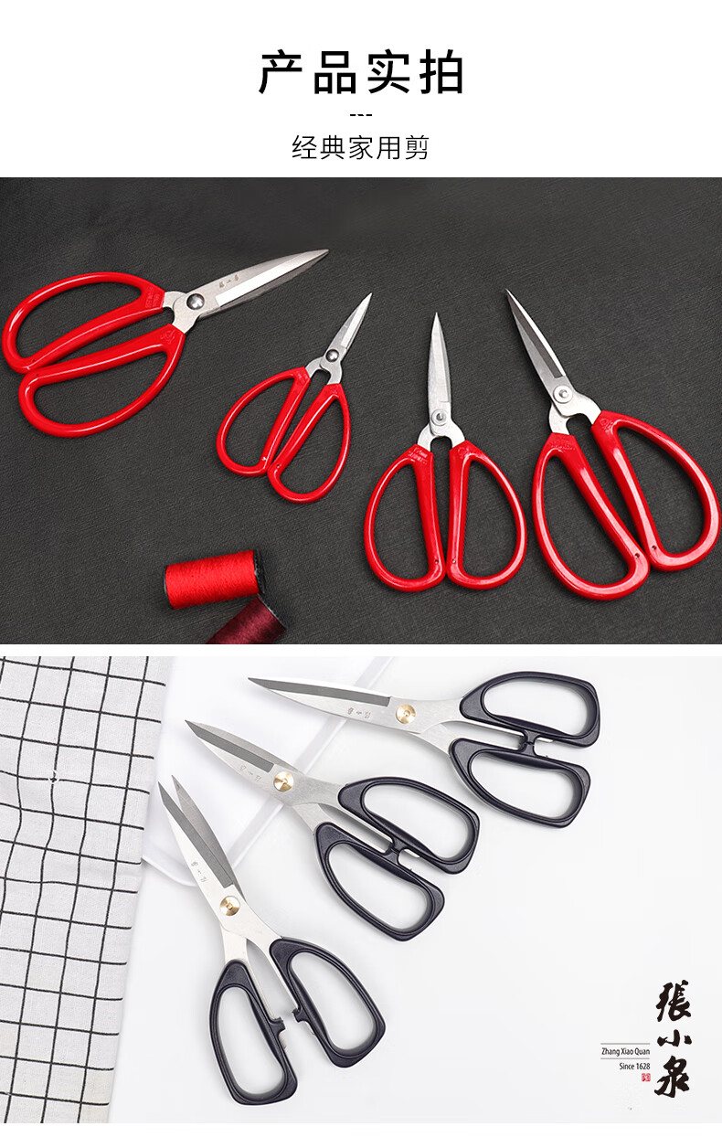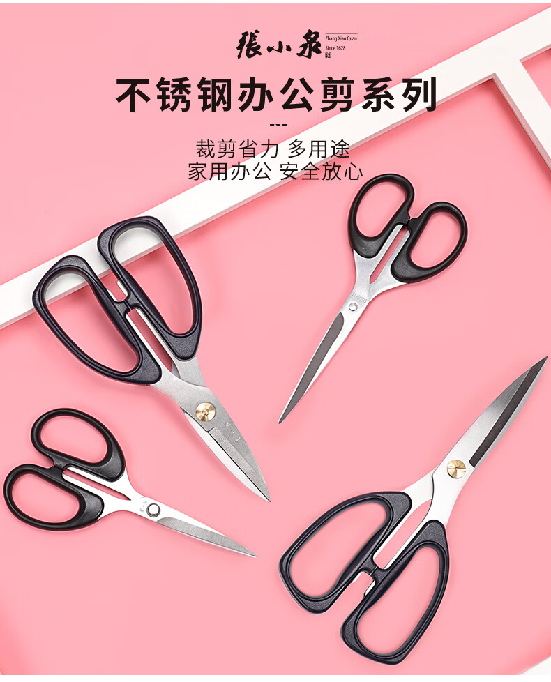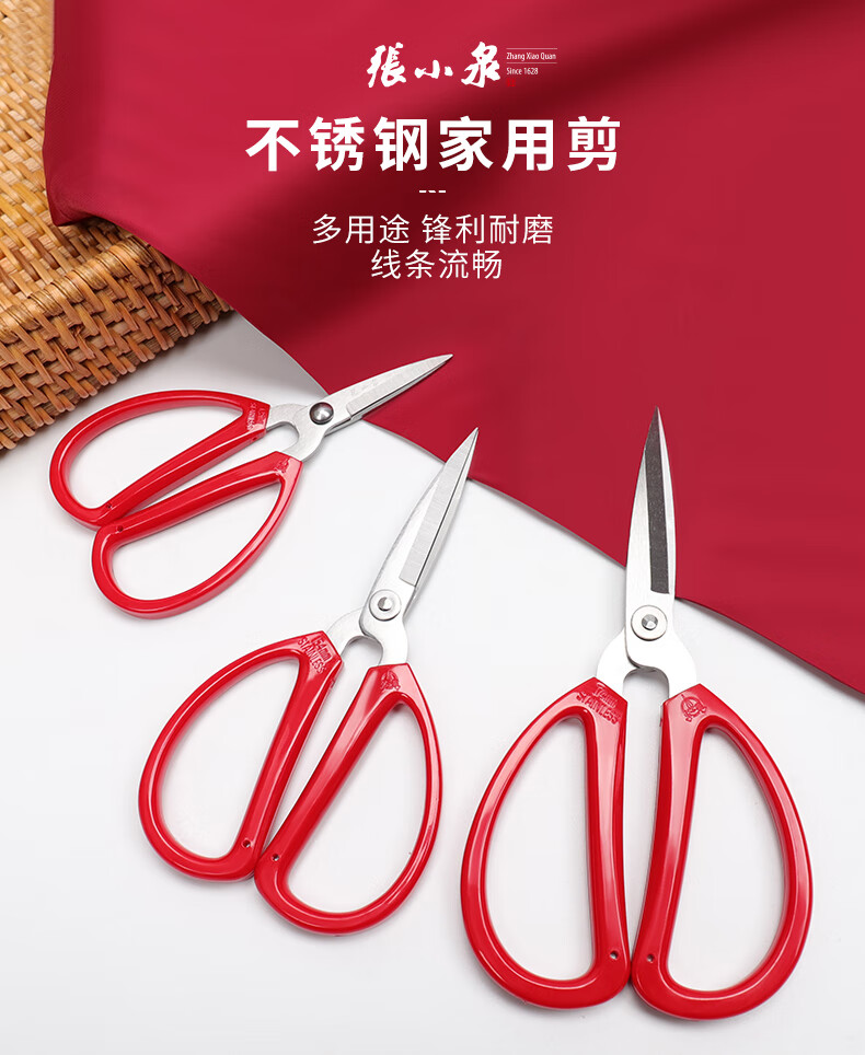 张小泉剪刀不锈钢家用美工裁缝剪线头办公工业专用小剪子剪纸尖头 强力剪小号(长170mm)
