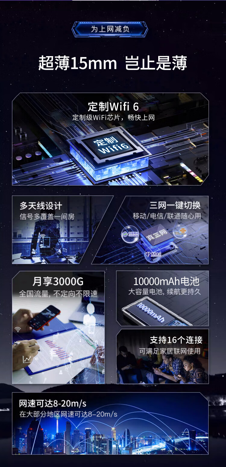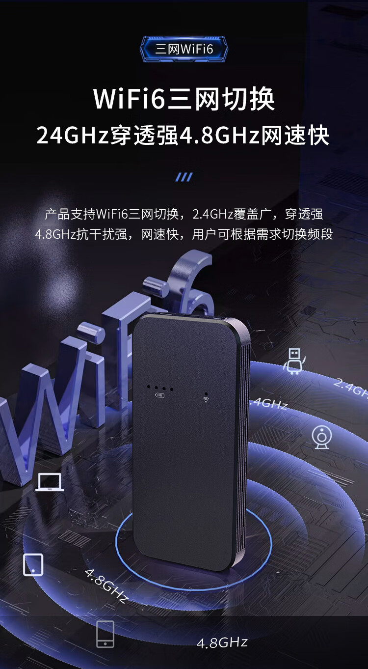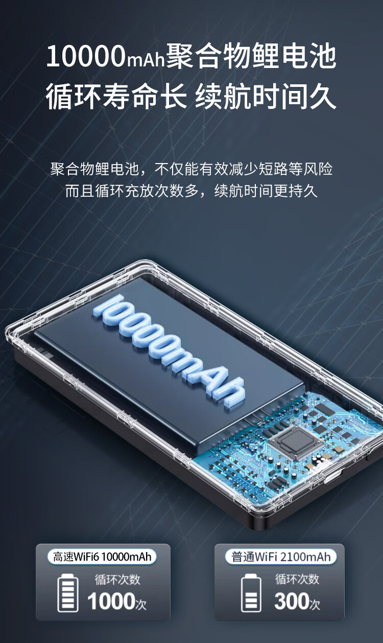 Con U banco de energía WiFi6 portátil carga rápida enrutador 4g dos en uno punto de acceso wifi portátil para automóvil banda ancha inalámbrica móvil sin tarjeta tres Netcom tarjeta de Internet de tráfico puro de alta velocidad versión de fibra óptica de ocho núcleos + carga rápida de 10000 mAh negro