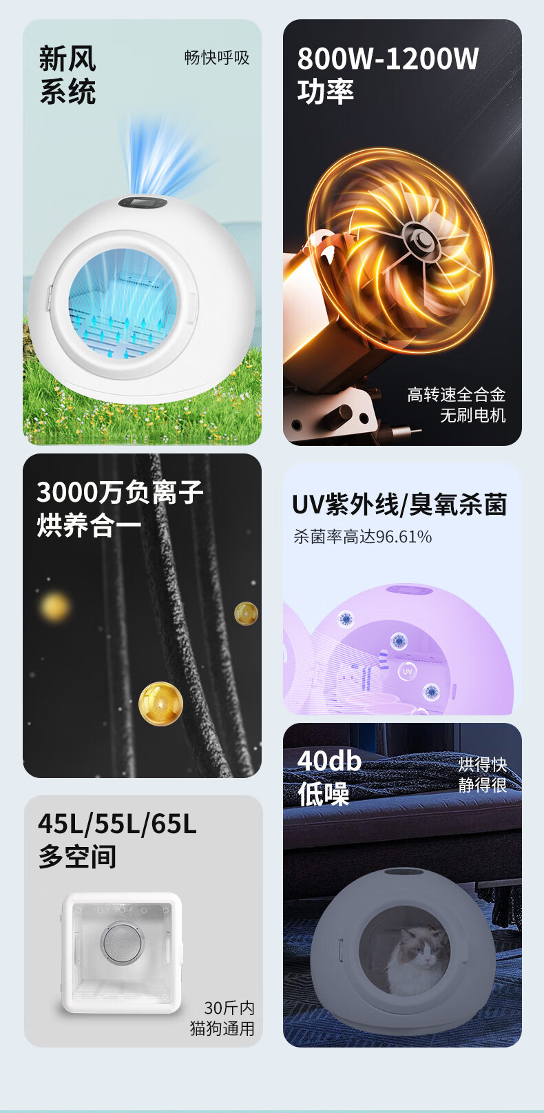 Chongzhidi caja de secado inteligente para mascotas a temperatura constante secador de baño para perros y gatos artefacto para soplar y secar el cabello de mascotas hogar 45L estándar 1200w salida de aire inferior