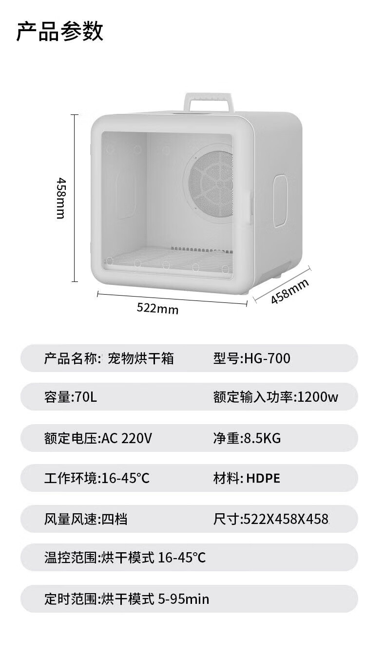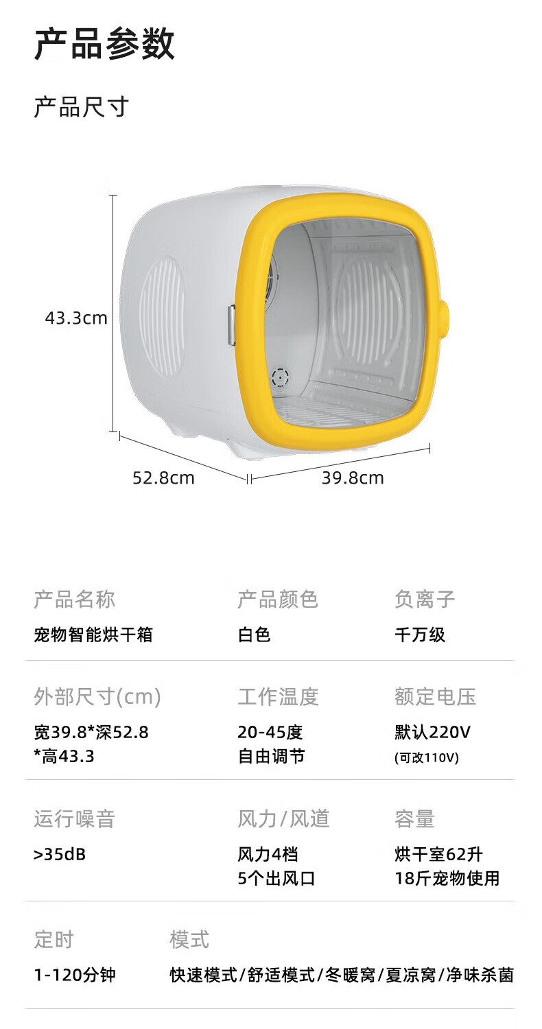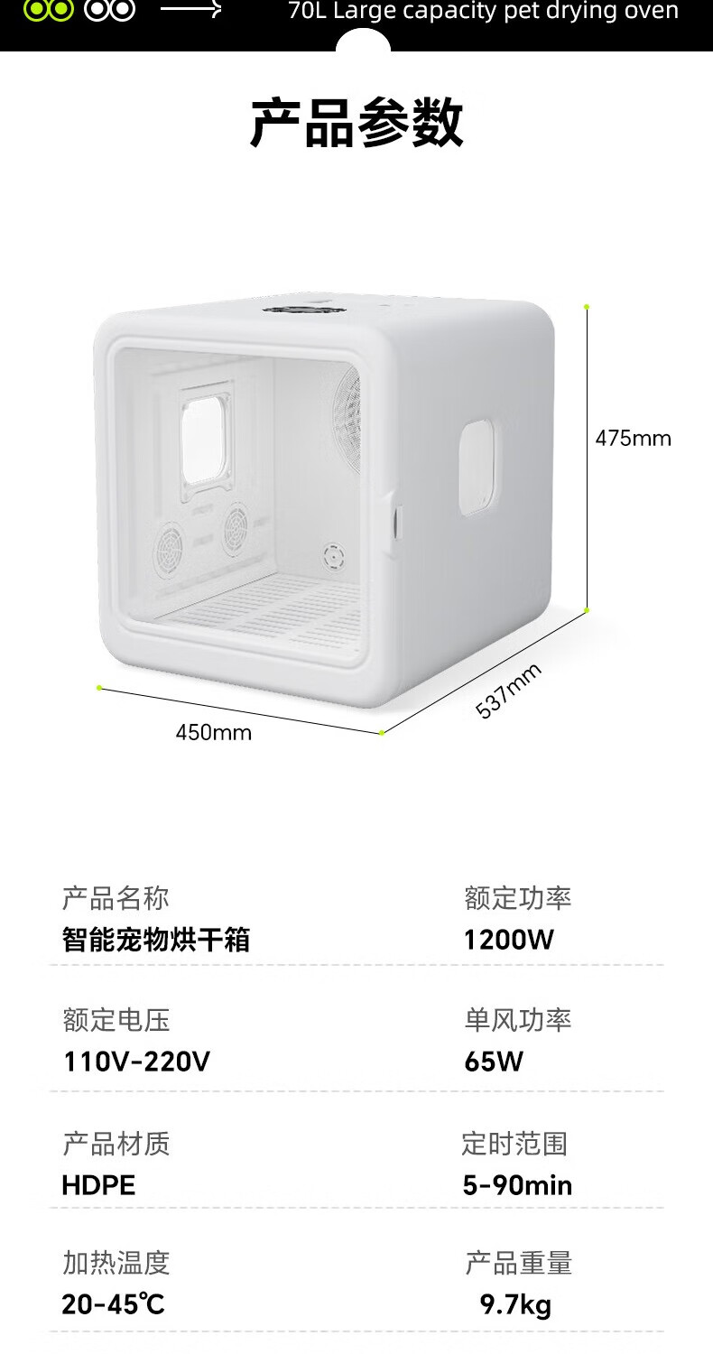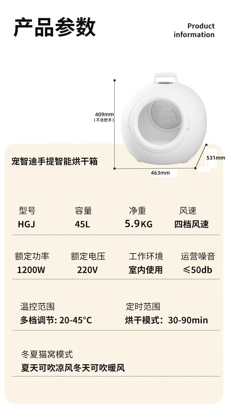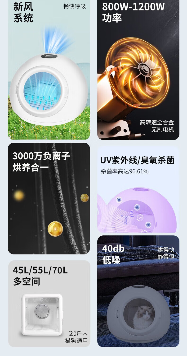 Chongzhidi smart constant temperature pet drying box cat and dog bathing dryer pet hair blowing and drying artifact home 45L upgrade 1200w bottom air outlet