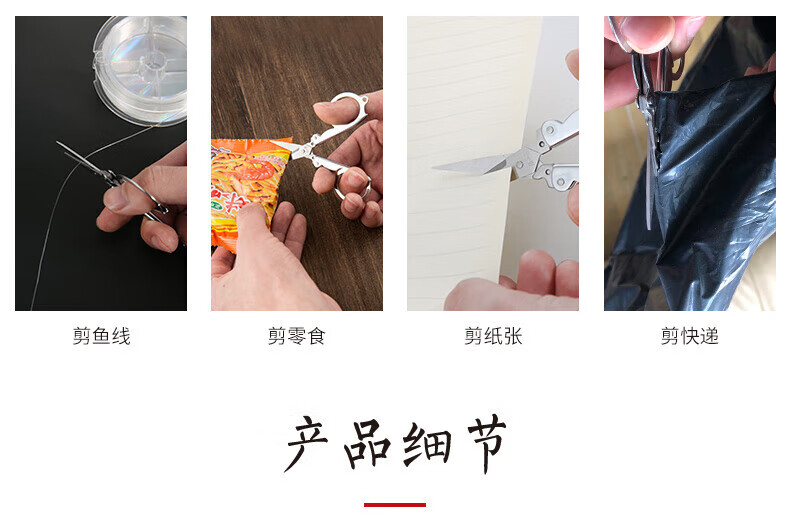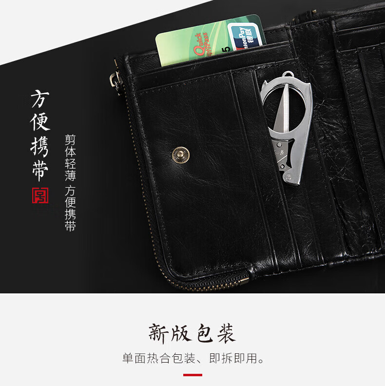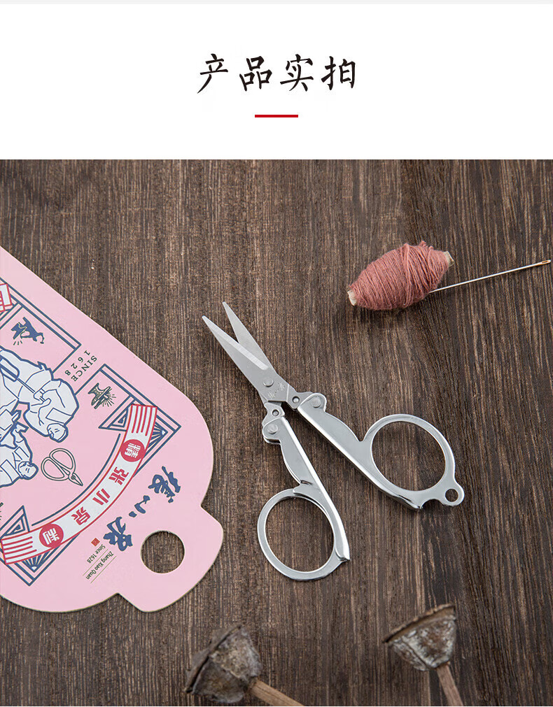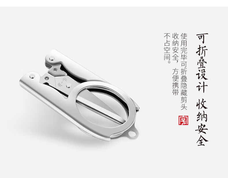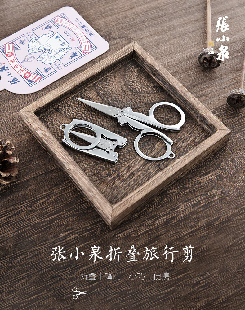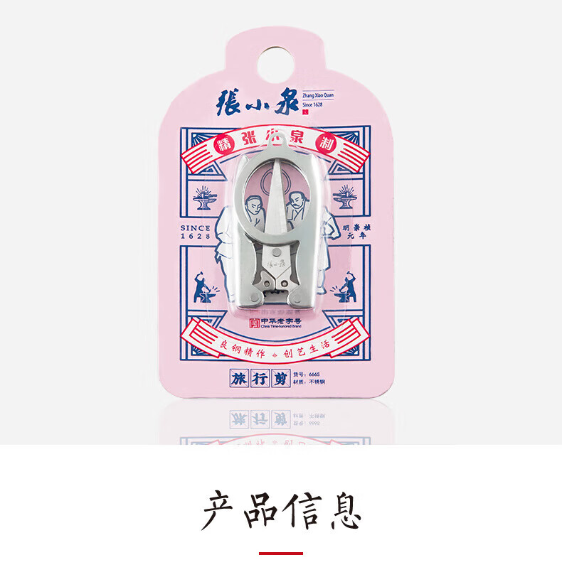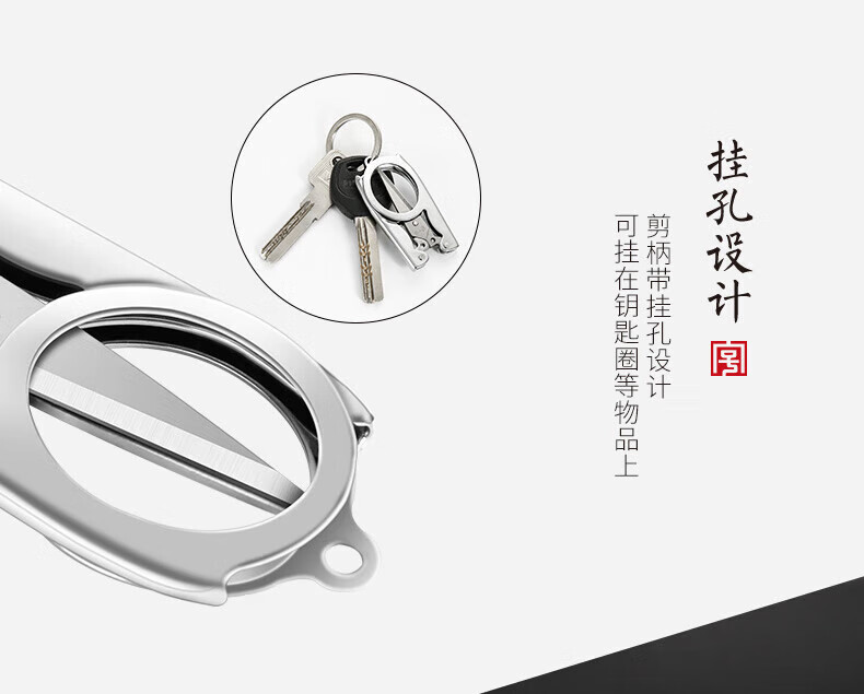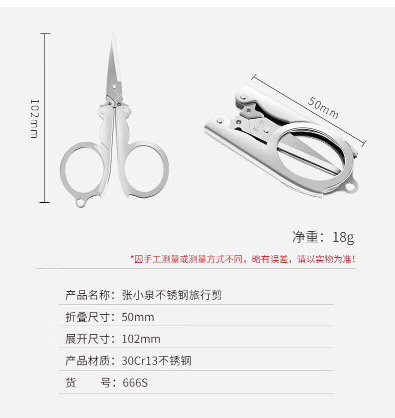 张小泉剪刀 小剪子 不锈钢折叠旅行剪刀带钥匙扣剪刀666S 原色 带防伪