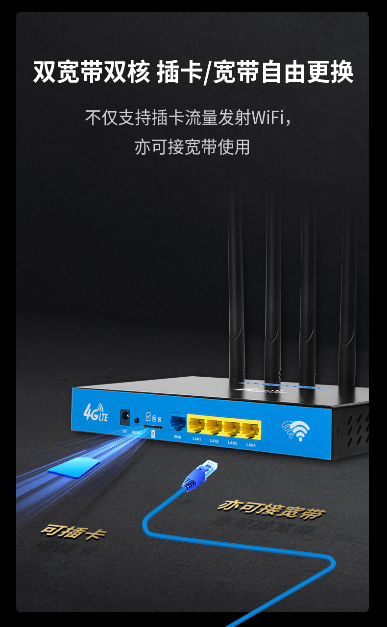 Tuoshi 4g industrial wireless router full Netcom home enterprise backup card Internet treasure Unicom Telecom car portable mobile wifi hotspot to wired overseas version - LT210S four antenna 4G wireless card router without card