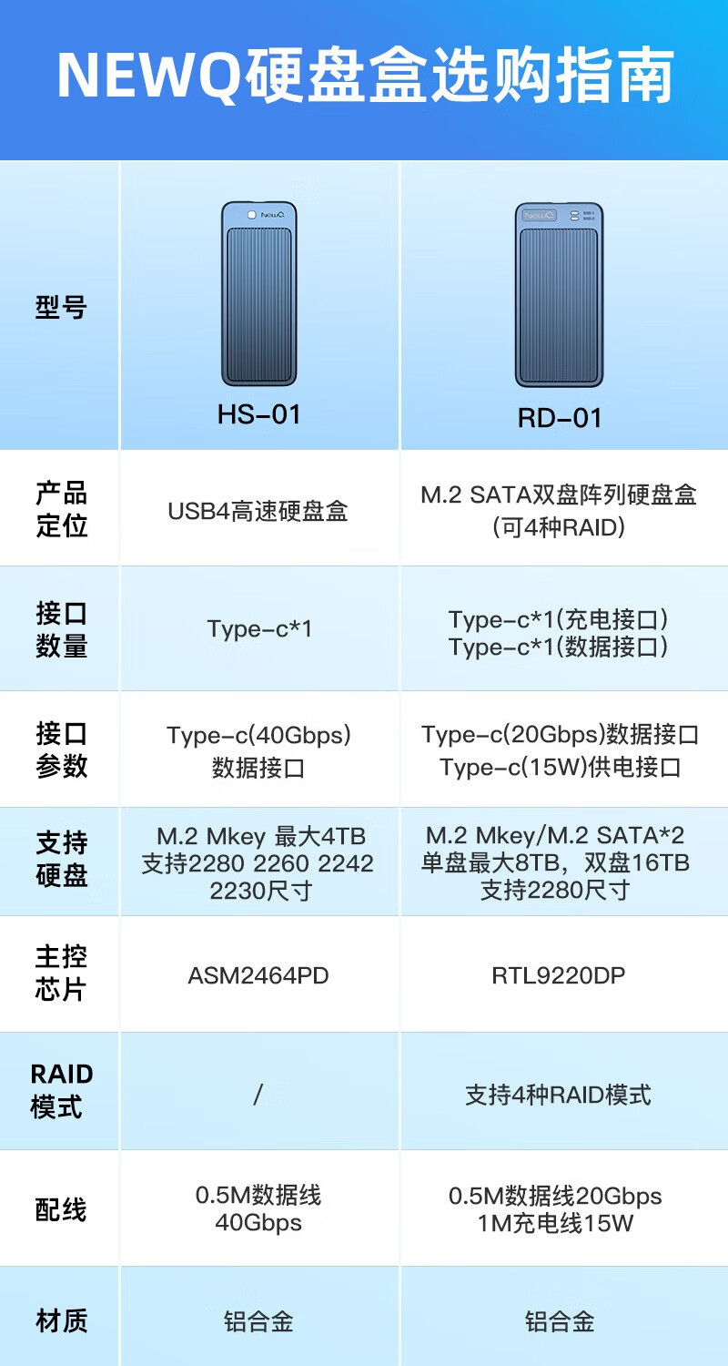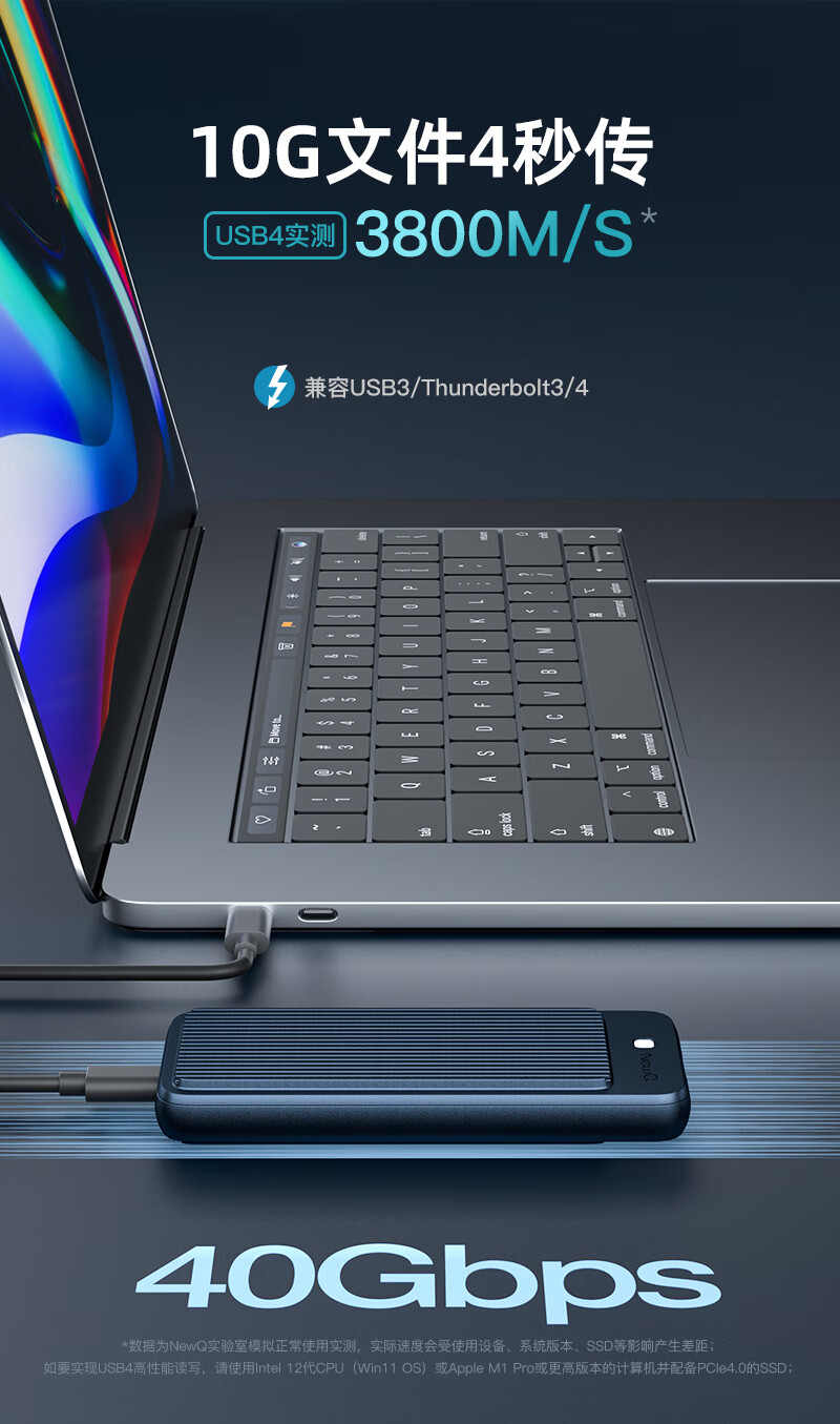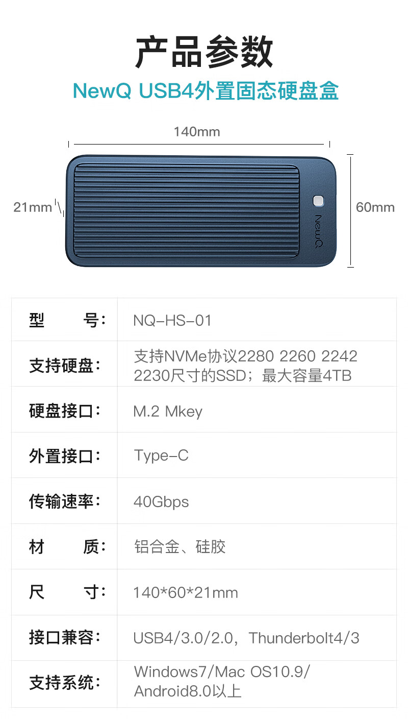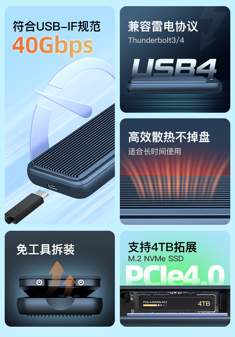 NEWQ雷电4/3移动固态USB4.0硬盘盒双盘位M.2 NVMe sata磁盘阵列raid硬盘盒手机直连适用ipad笔记本电脑 USB4.0硬盘盒【不支持RAID】