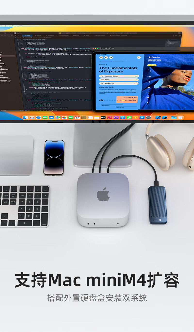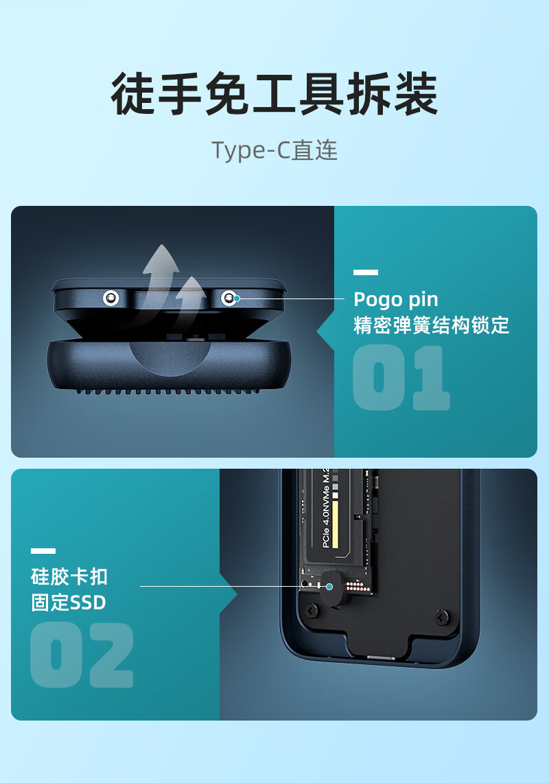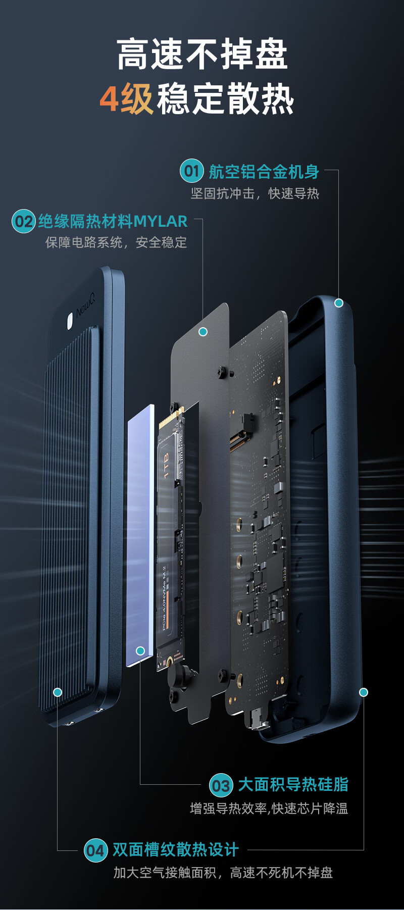 NEWQ雷电4/3移动固态USB4.0硬盘盒双盘位M.2 NVMe sata磁盘阵列raid硬盘盒手机直连适用ipad笔记本电脑 USB4.0硬盘盒【不支持RAID】