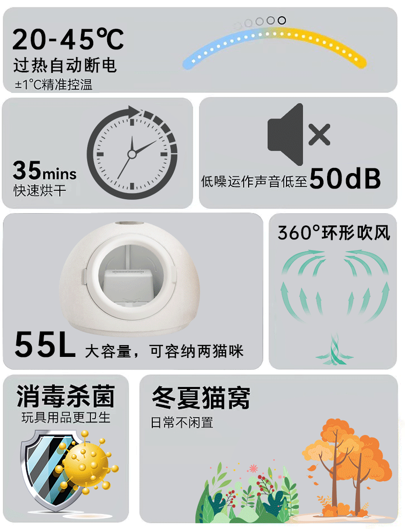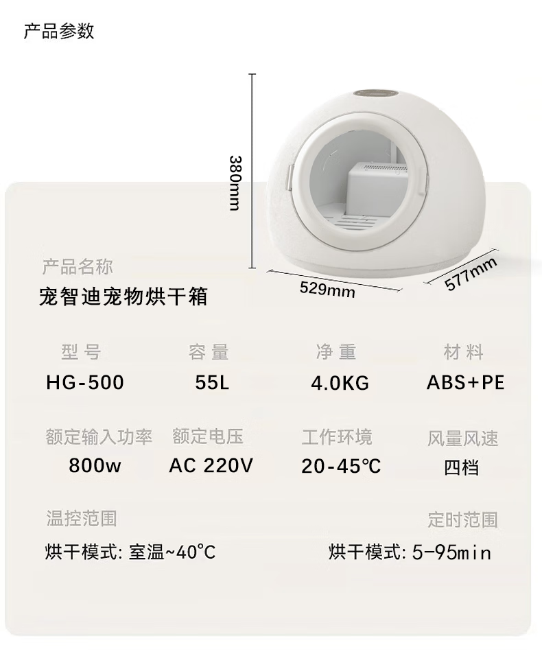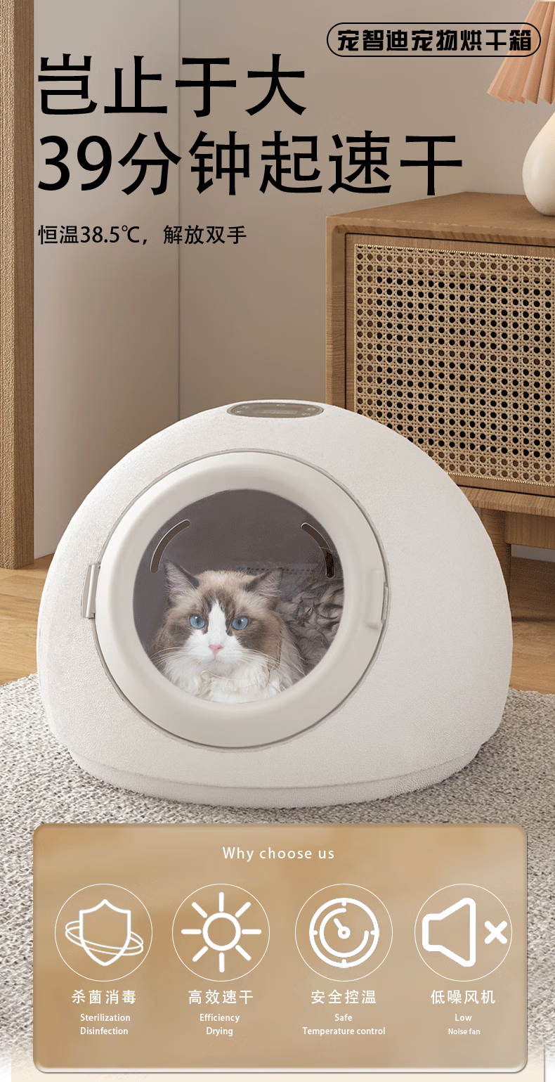 Petzhidi cat dryer household automatic small pet drying box dog bathing blow drying artifact sterilization constant temperature basic model (ultraviolet + oxygen-rich fresh air system)