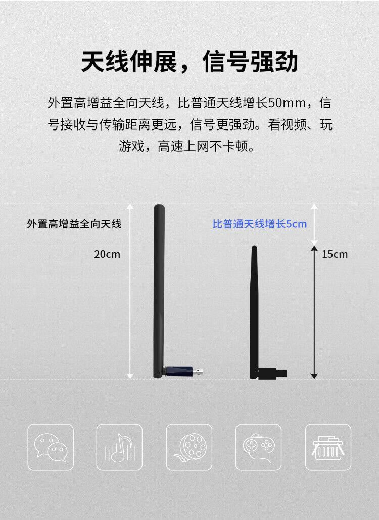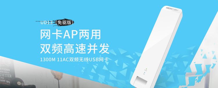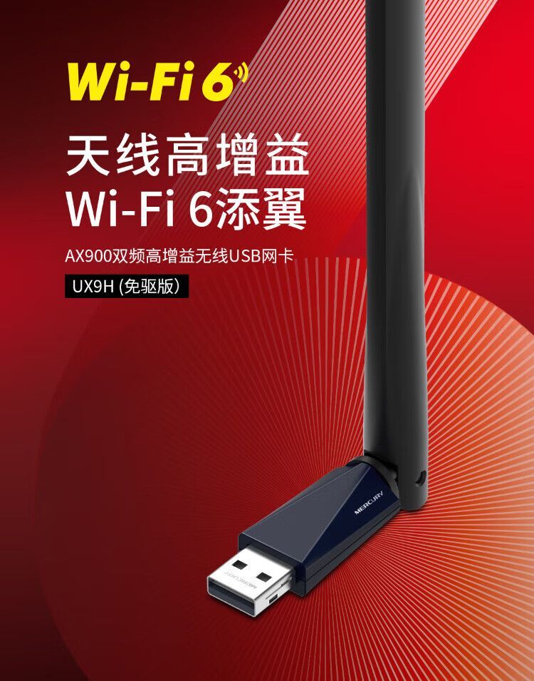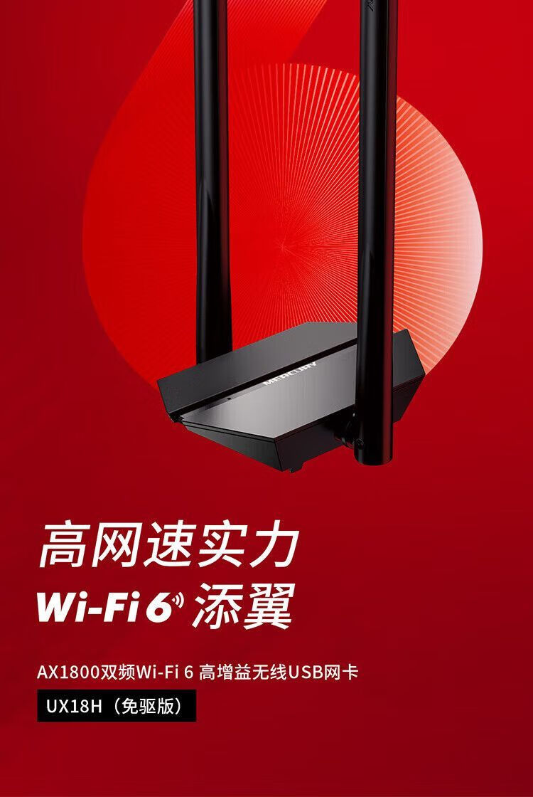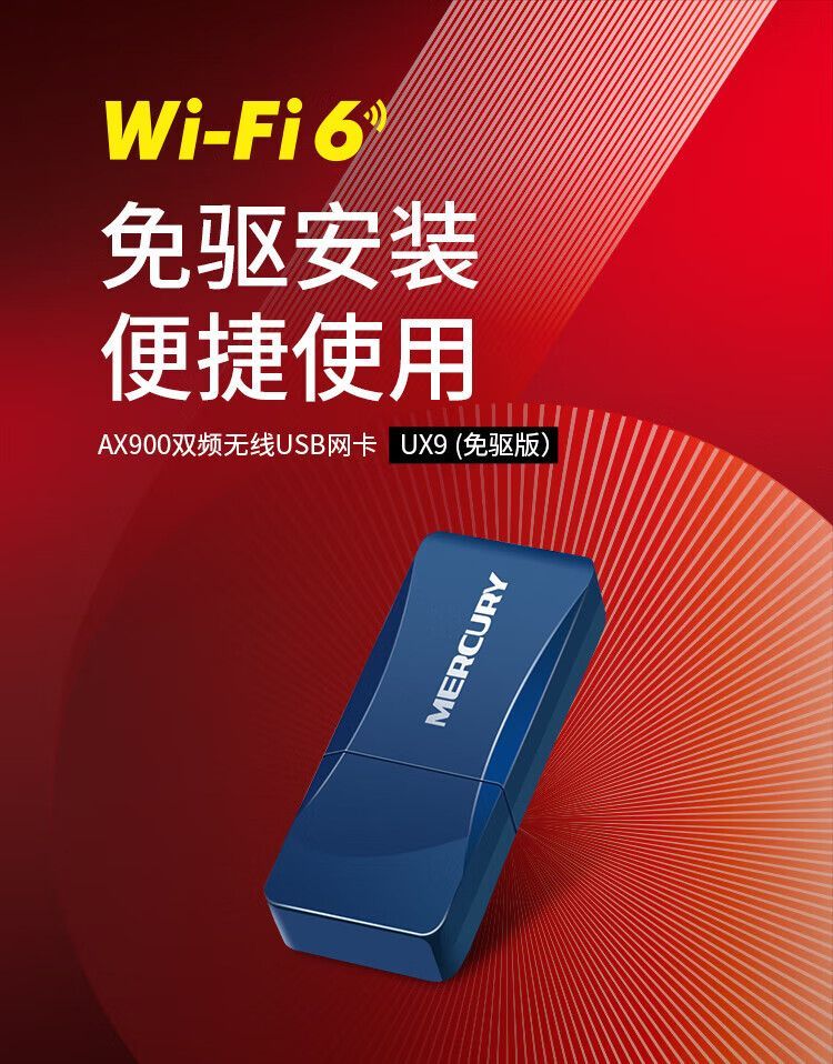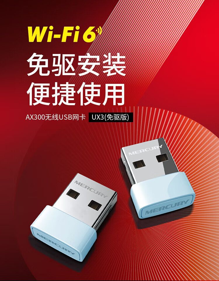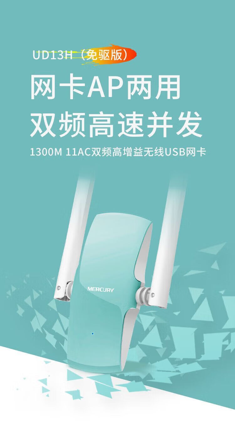 水星(MERCURY)无线网卡免驱版 随身wifi接收器发射器 台式机笔记本电脑通用 USB接口 智能自动安装 即插即用 【Win10/11】UD13免驱版