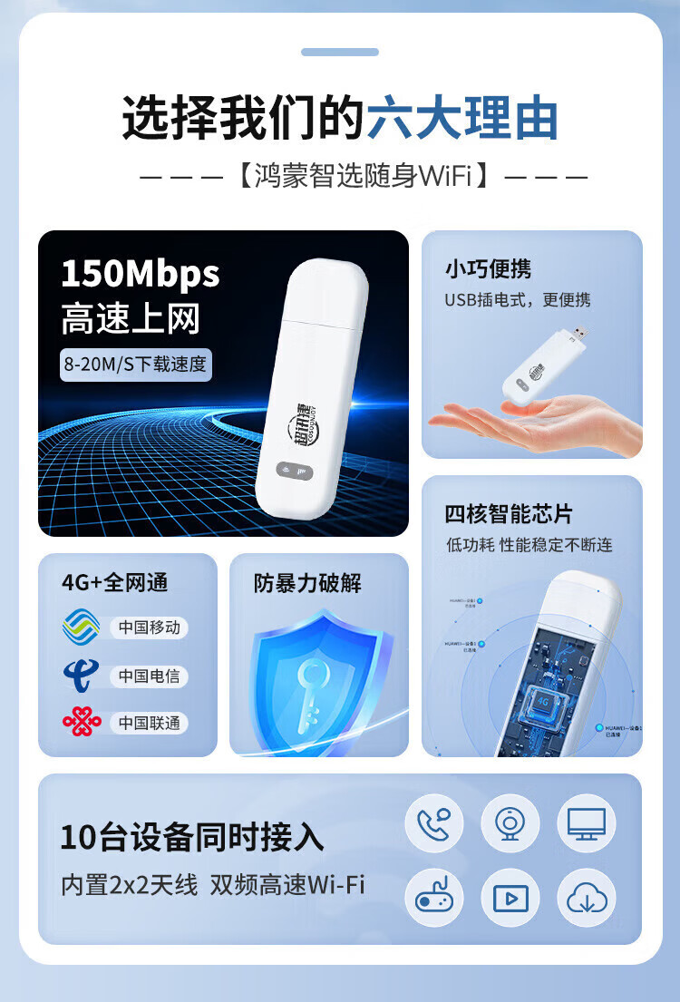 Huawei Smart Select Mobile Portable WiFi6 Triple Network Universal Wireless Network Card Portable 4G Car Laptop Plug and Play National Traffic 2025 Model 5g AX15B Dual Network Version + Annual Package 2000G Monthly