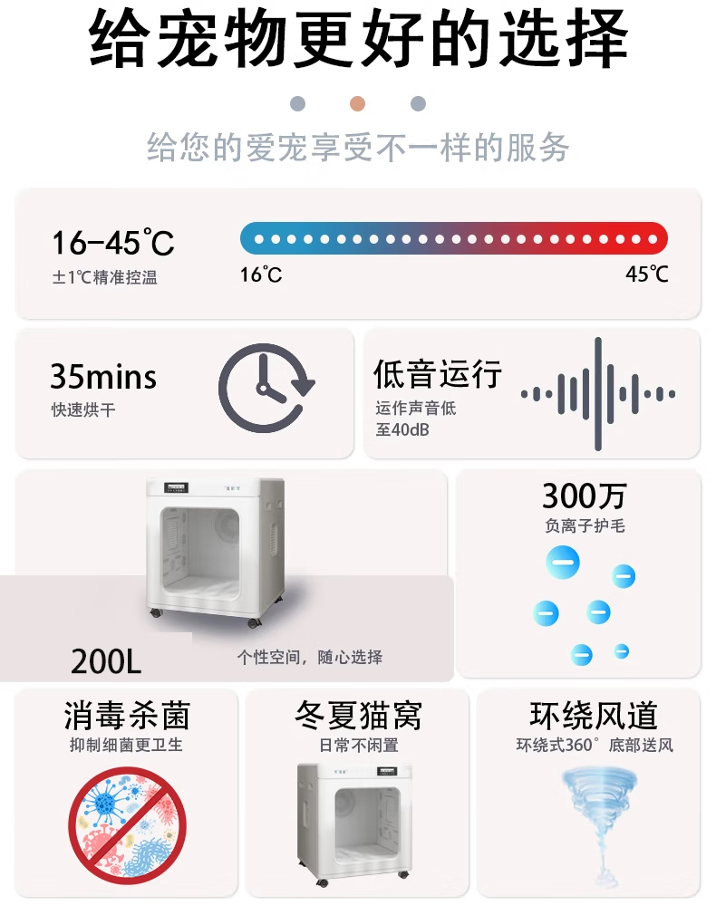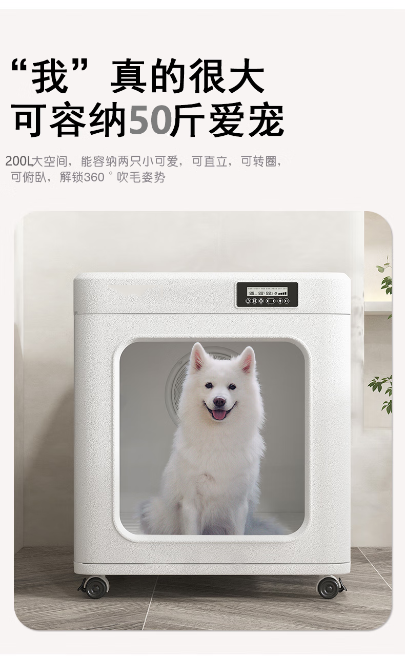 Pet Zhidi Caja de secado para mascotas para perros medianos y grandes Secador de pelo para mascotas Artefacto para bañar y secar con secador a perros Border Collie Blow Water Box Super Wind 430 litros 4 salidas de aire laterales 28 salidas de aire 2 ventiladores 120 Jin Jin es igual a 0,5 kg. Disponible dentro