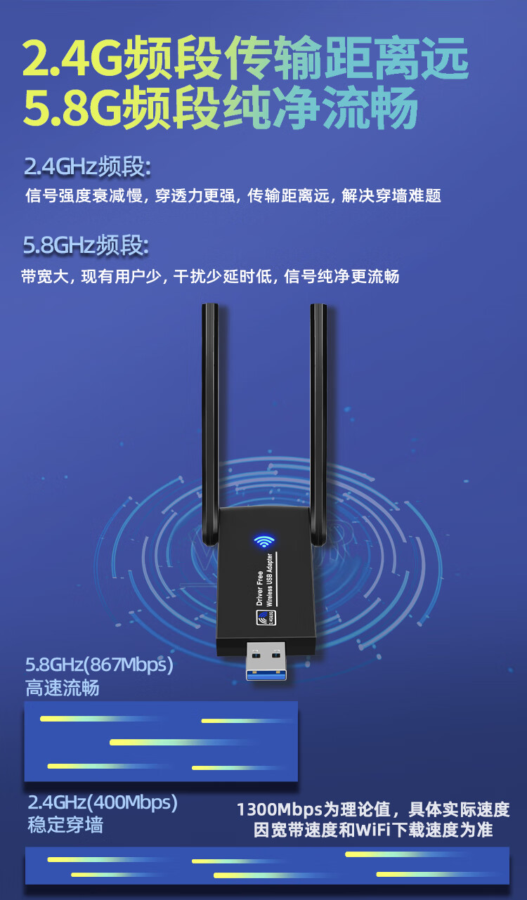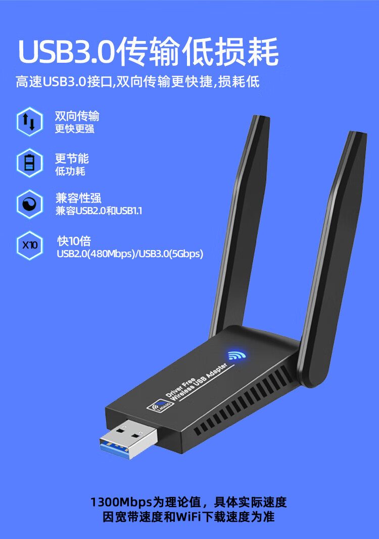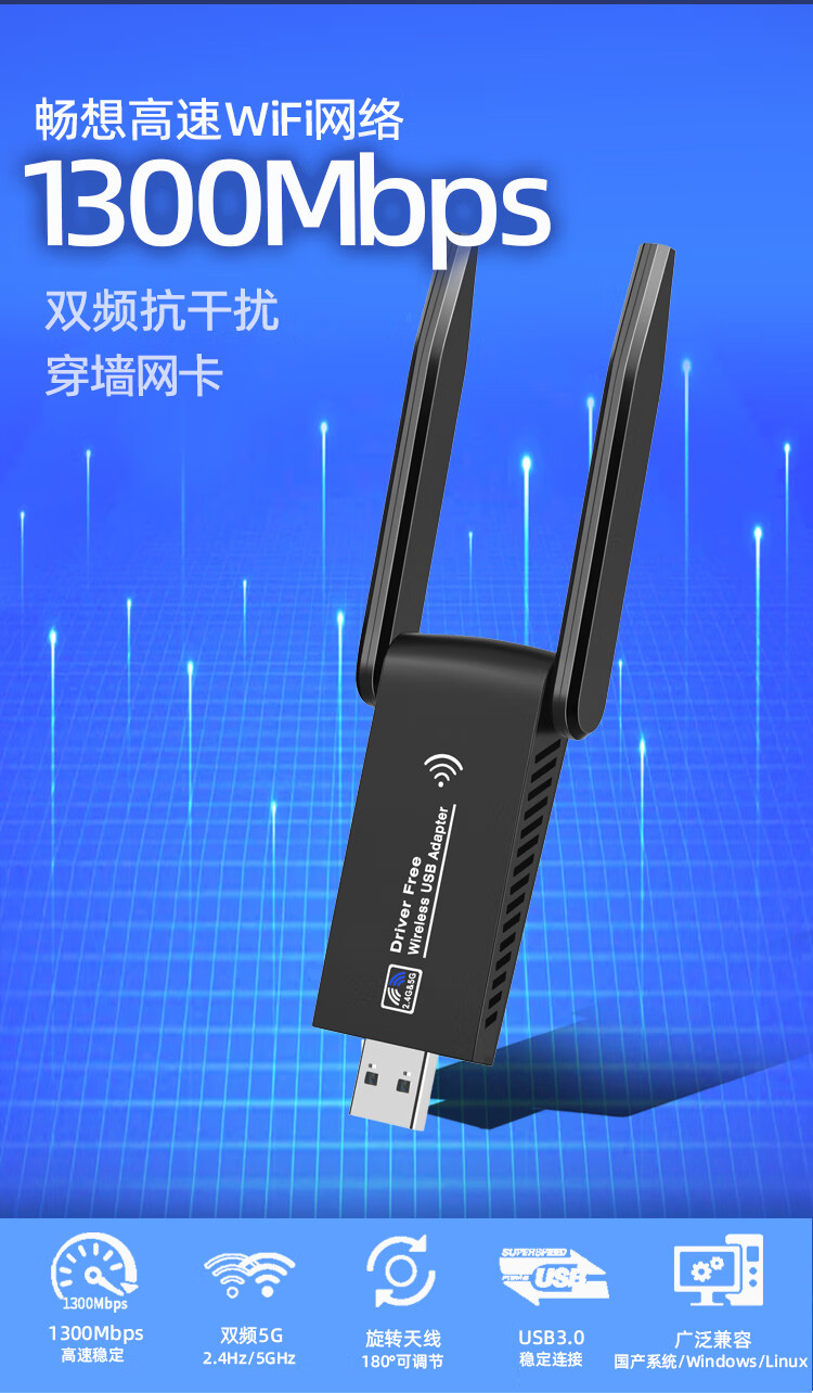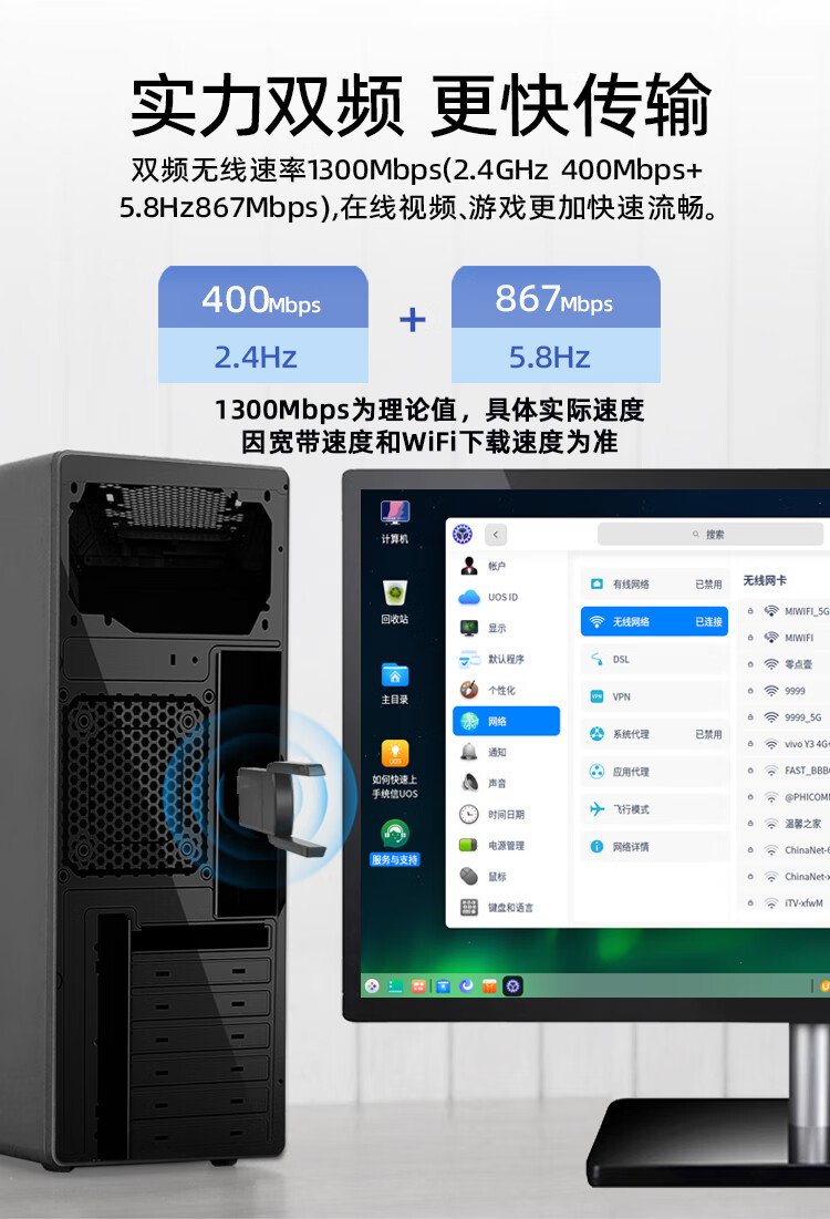 Leite Xinchuang uos dual-band driver-free 5g wireless usb network card Galaxy Kirin v10sp1 domestic system receiver WiFi device dual-band 1300 MB UOS Galaxy Kirin v10sp1