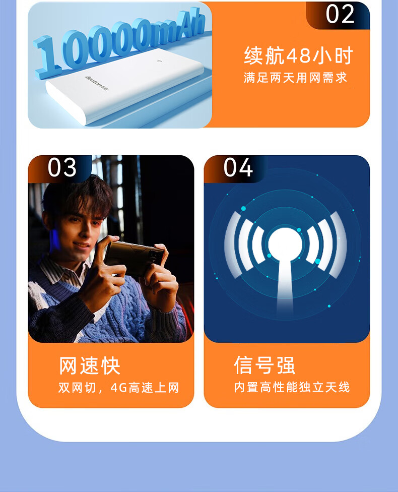 Shangwanglian Power Bank Wireless Network Portable WiFi Unlimited Traffic 10000 mAh Mobile Unicom Telecom Triple Network Router Card-Free Wireless Network 1500G Internet Traffic Package Regular Edition 4-core Network Speed Increased by 40%
